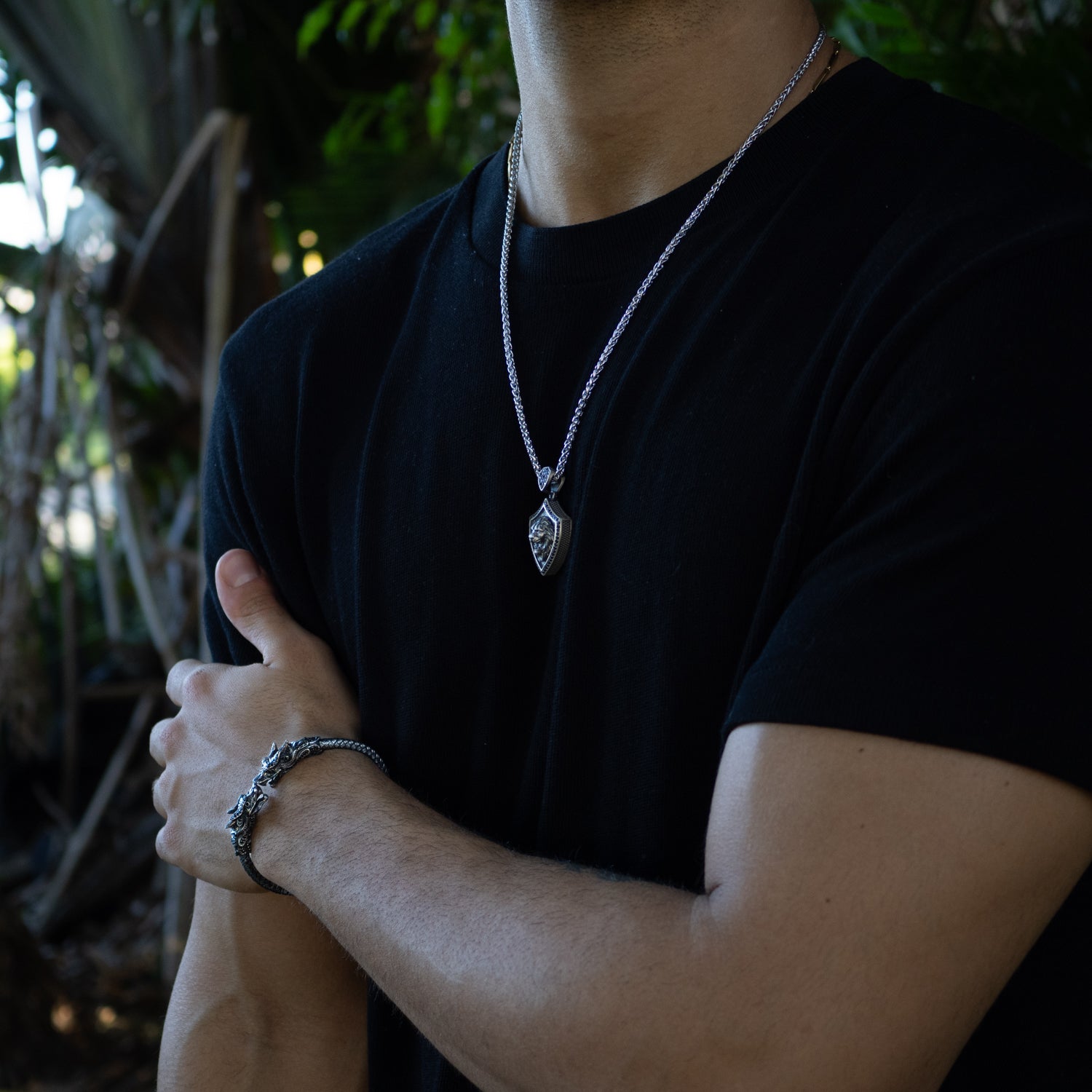 Twin Dragon Heart Men’s Sterling Silver Necklace
