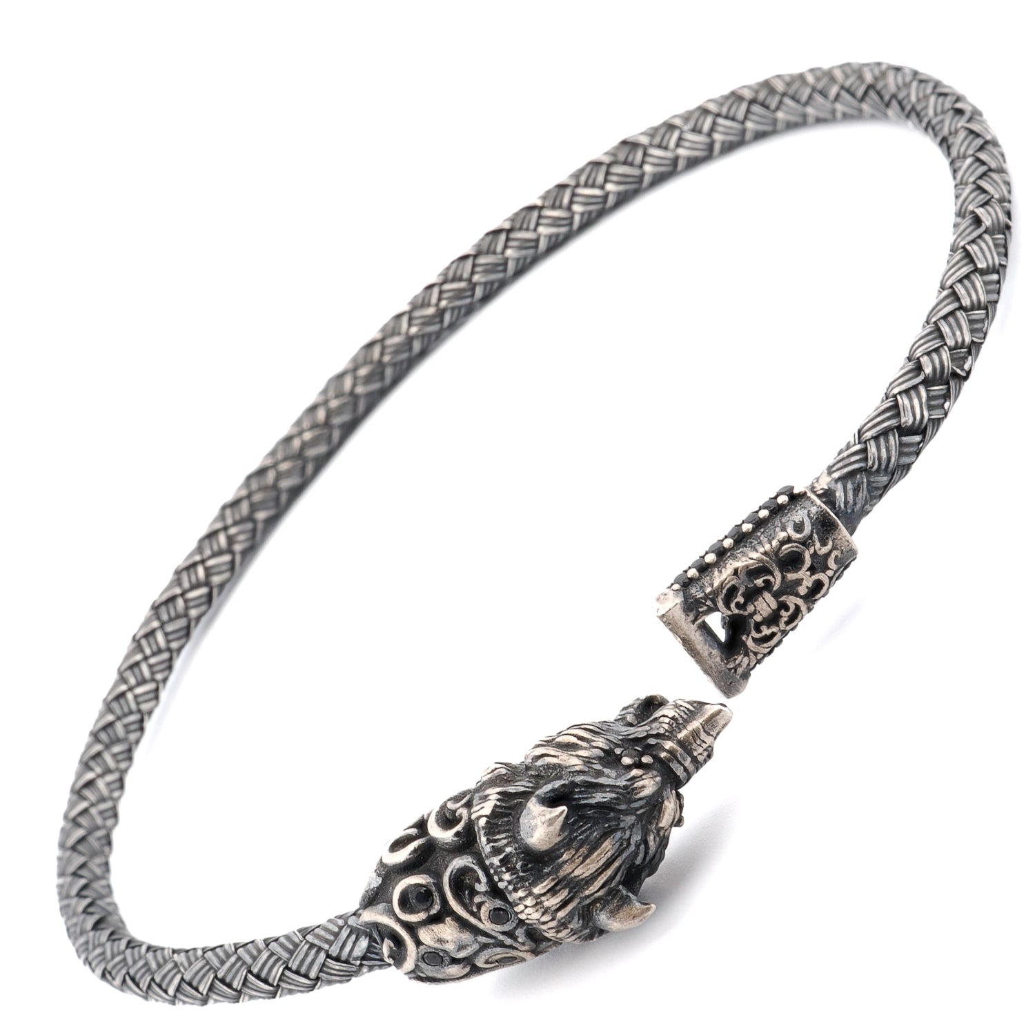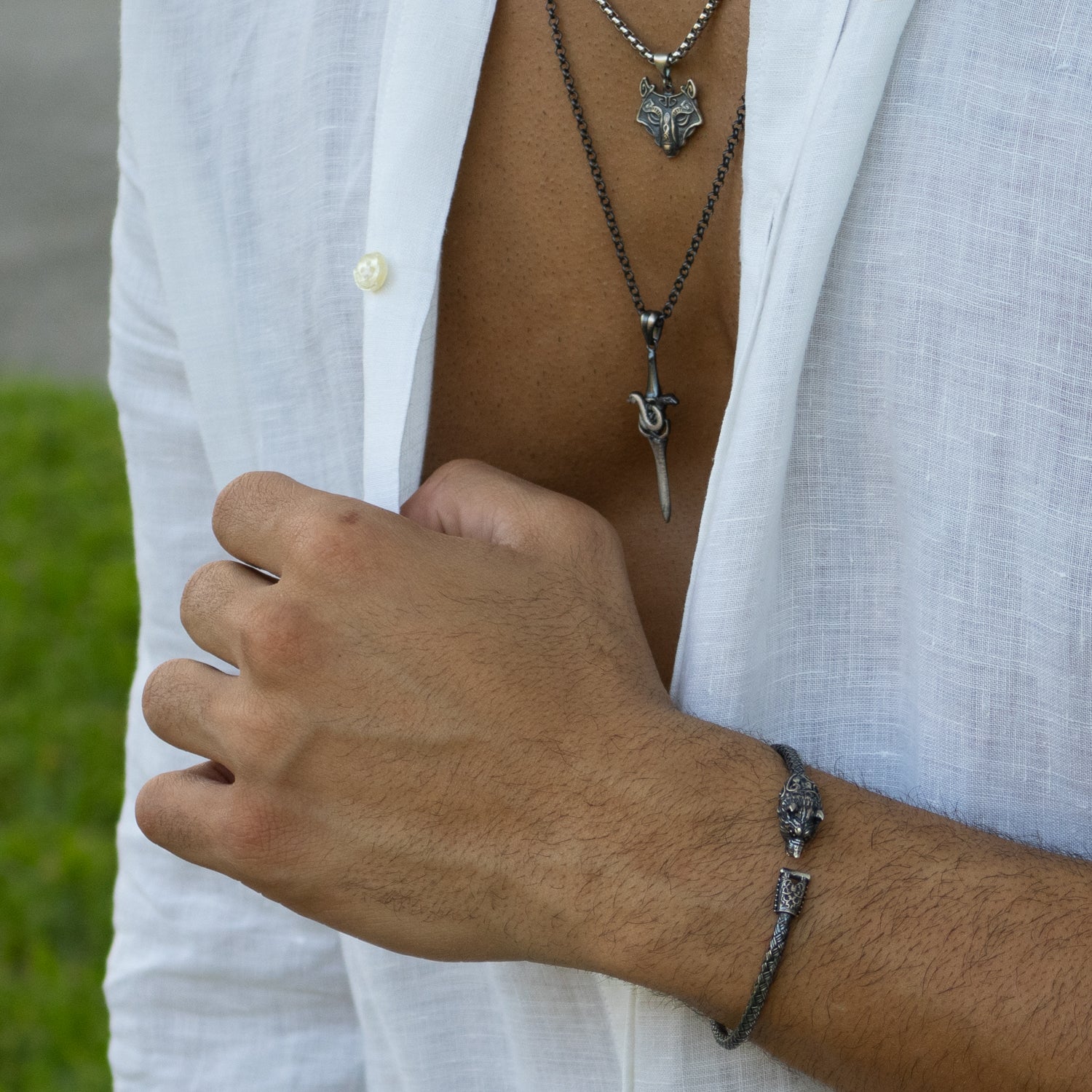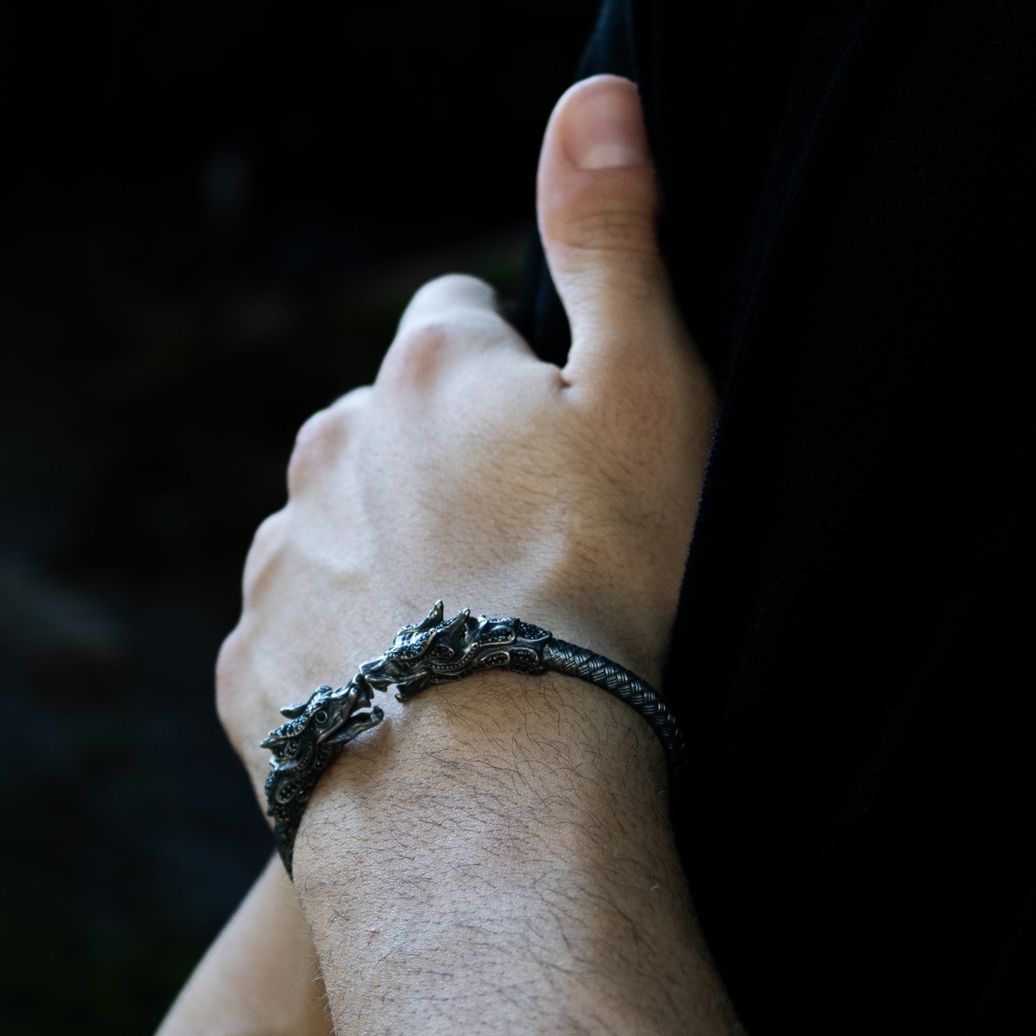 Twin Wolf Men’s Sterling Silver Bold Bracelet