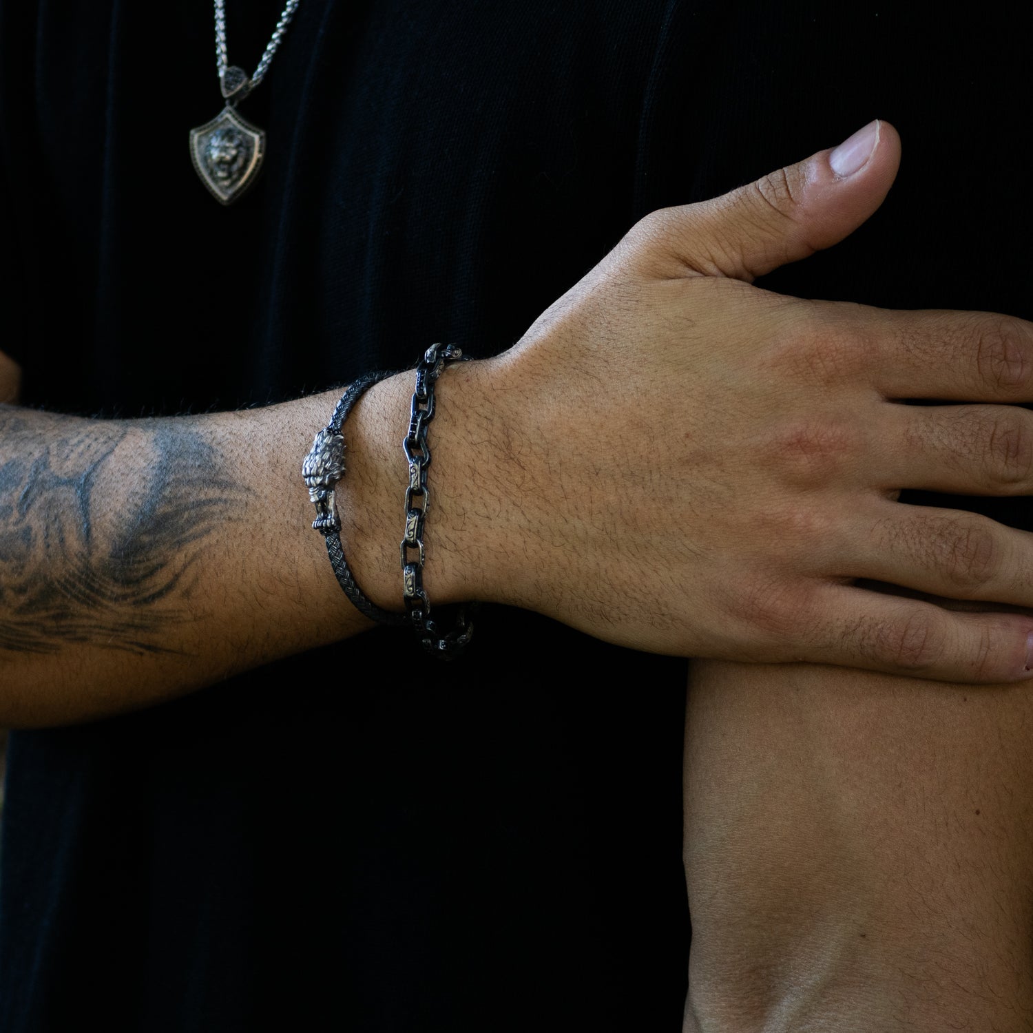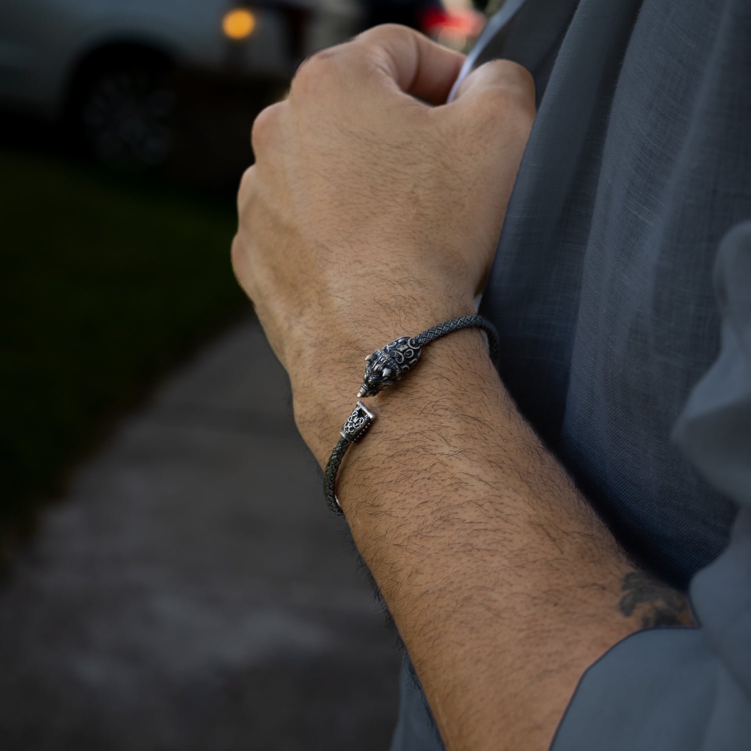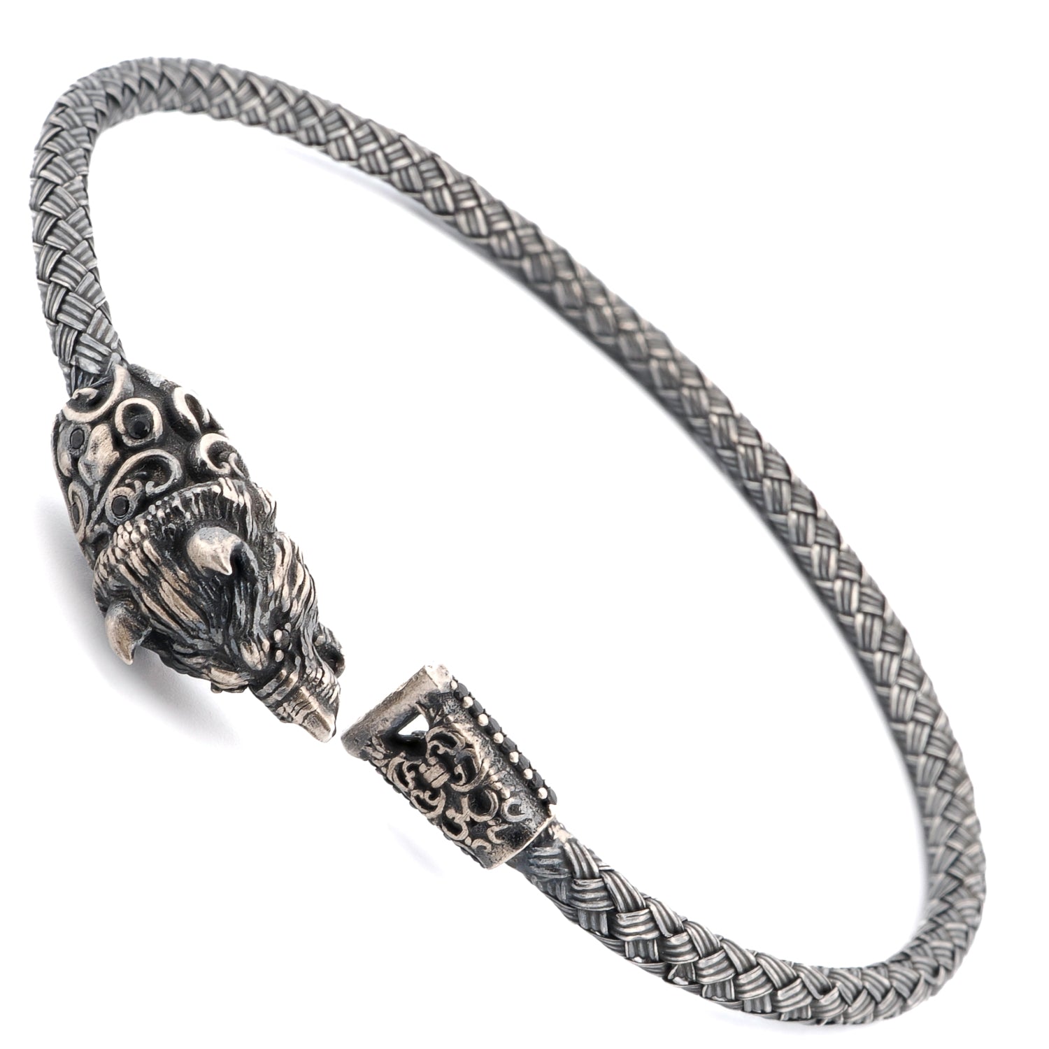 Twin Wolf Men’s Sterling Silver Bold Bracelet