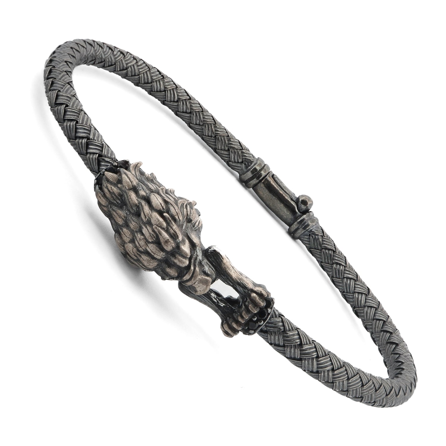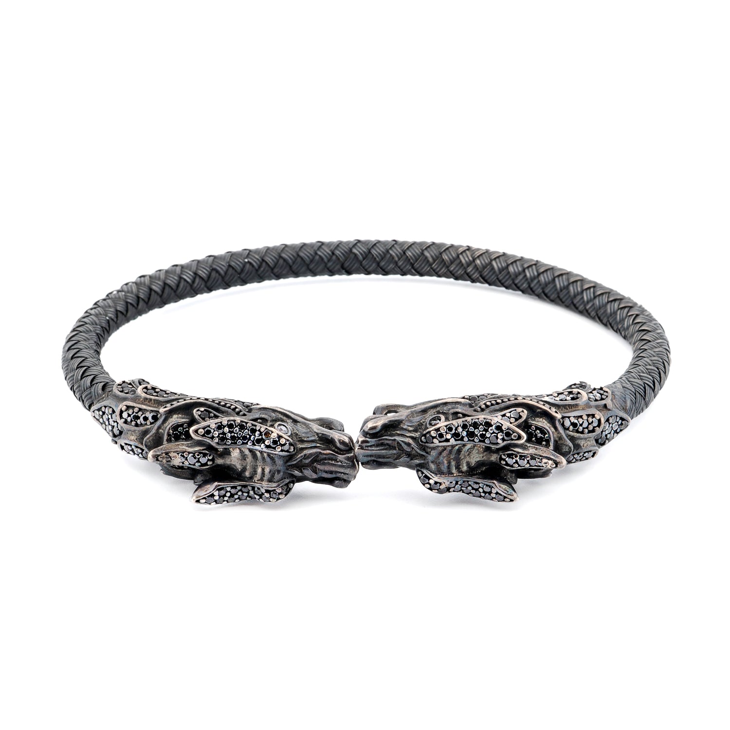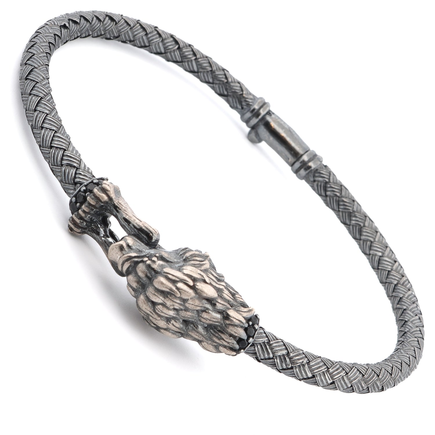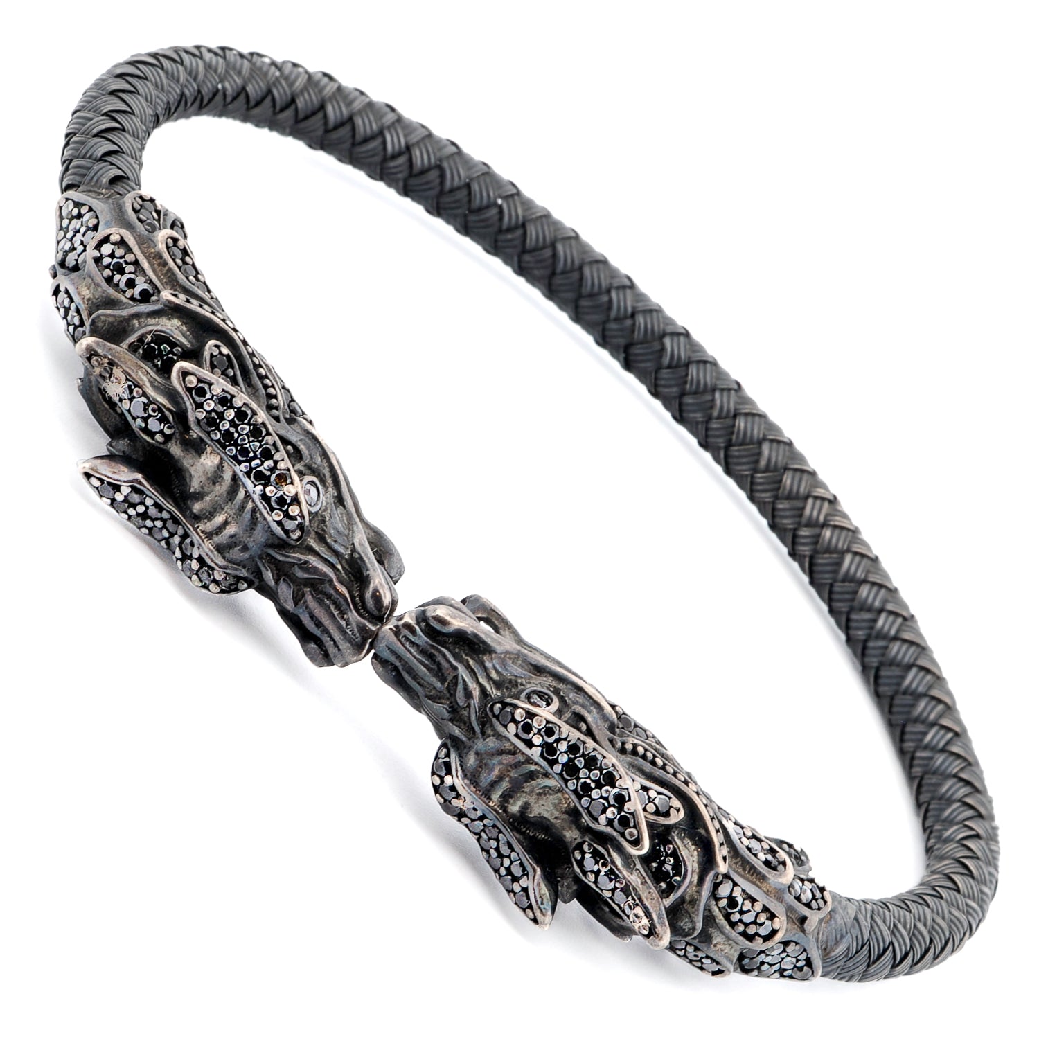 Wolf Fang Men’s Sterling Silver Black Diamond Bracelet