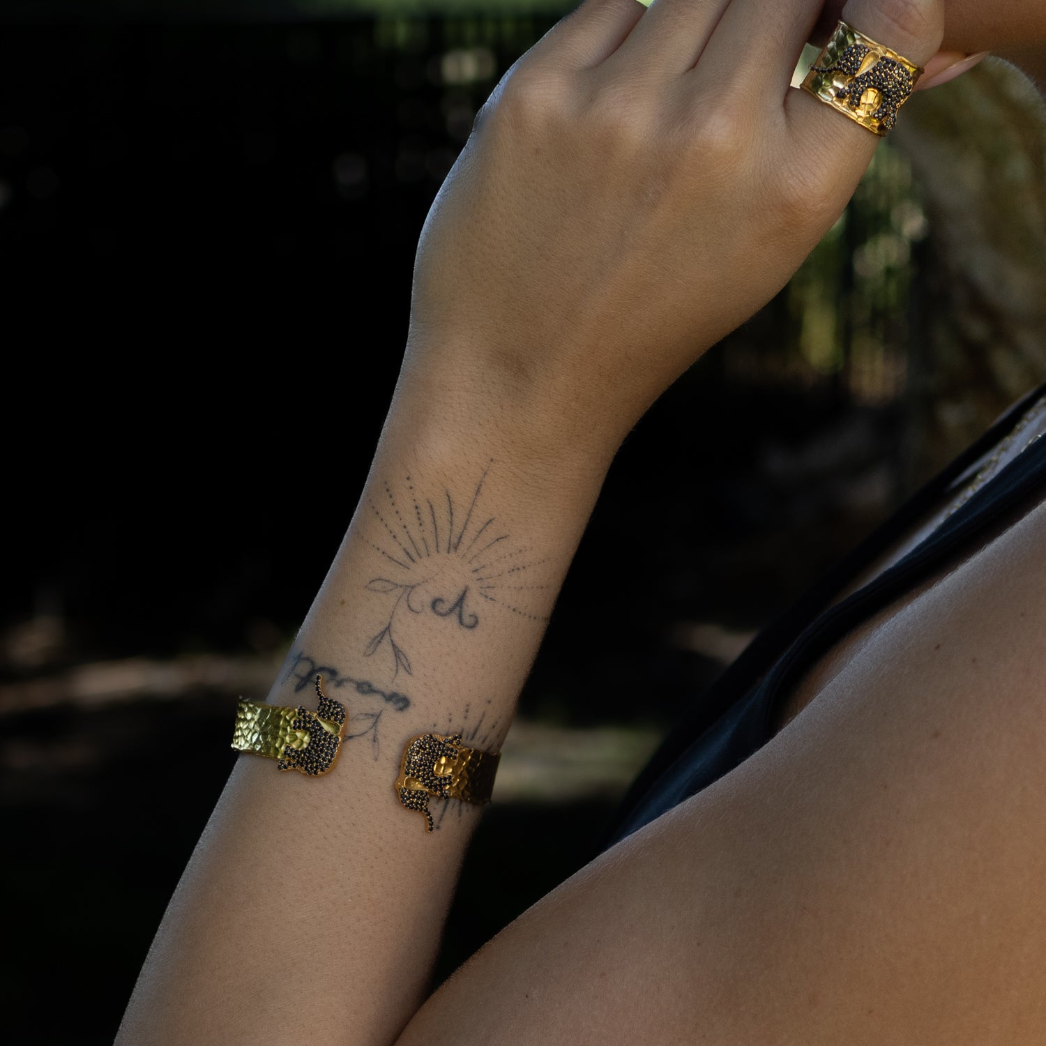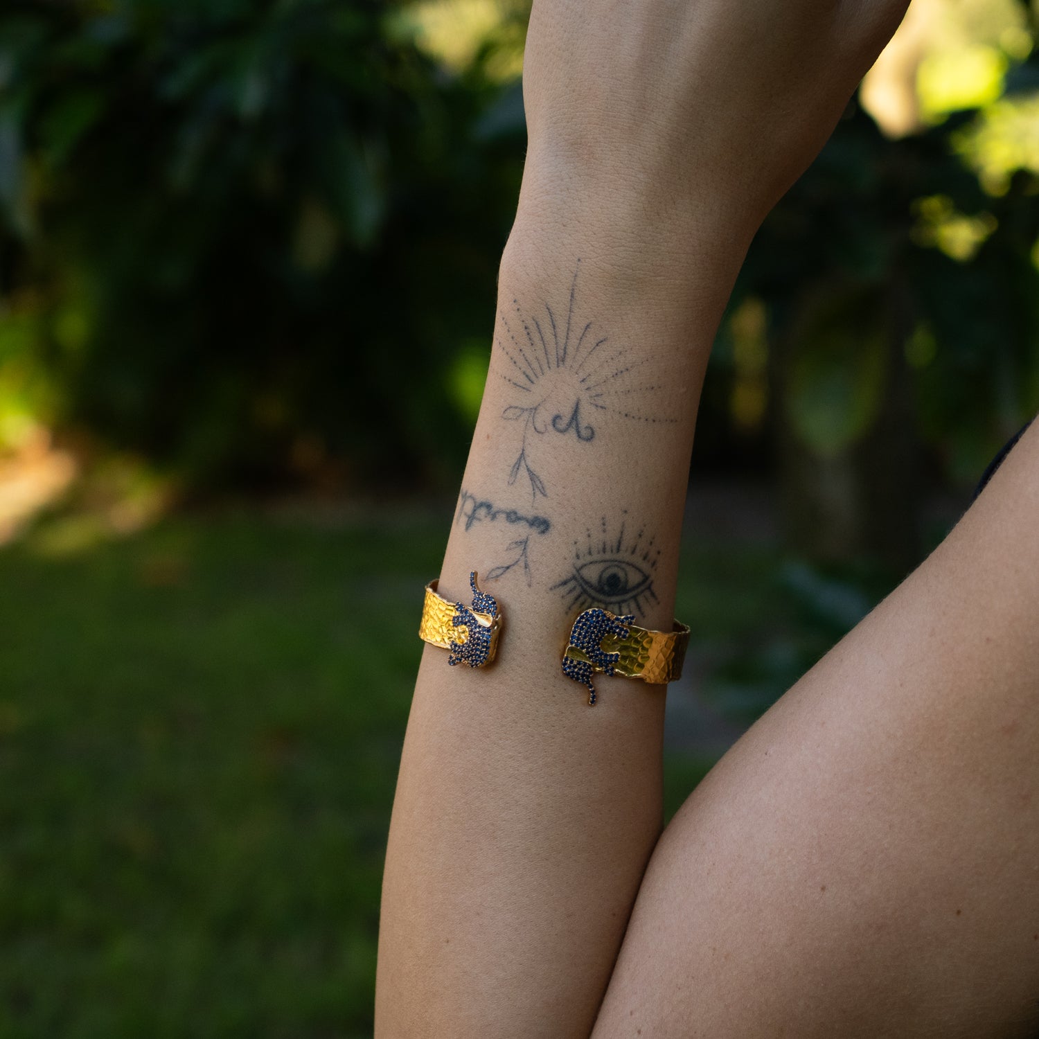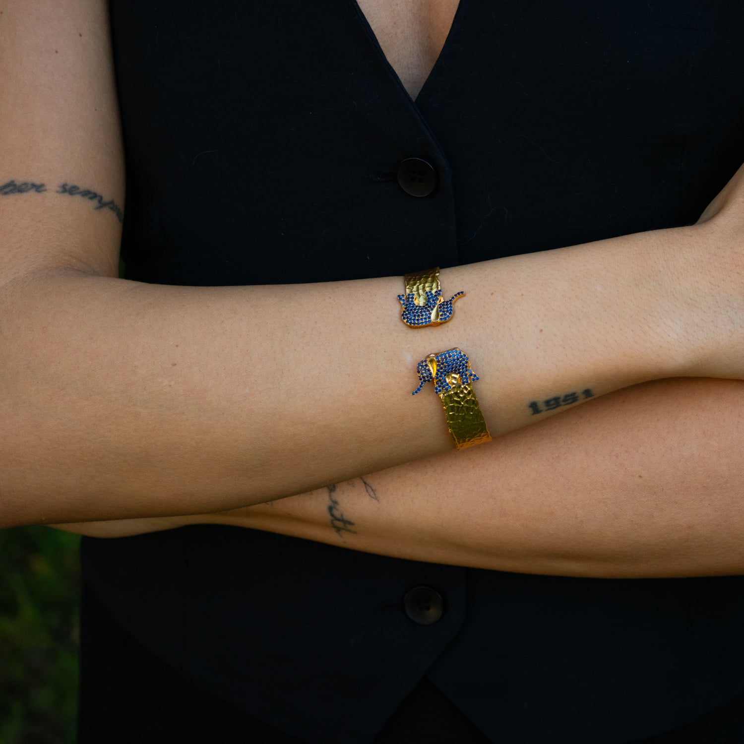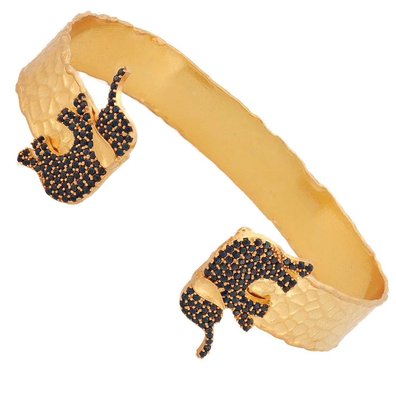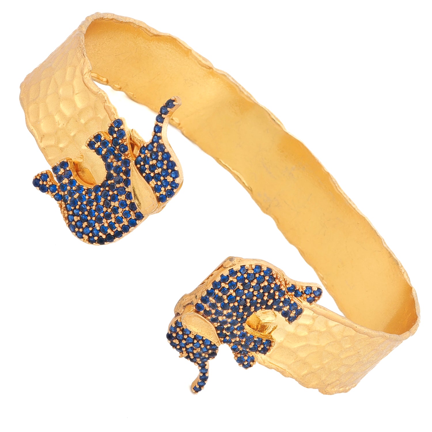 Guardian Sapphire Elephant Gold Cuff Bracelet