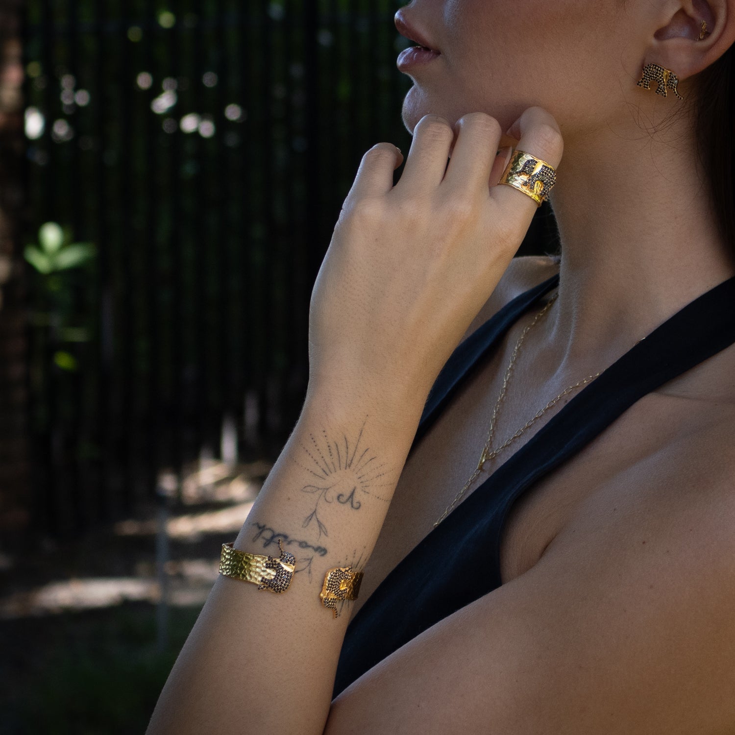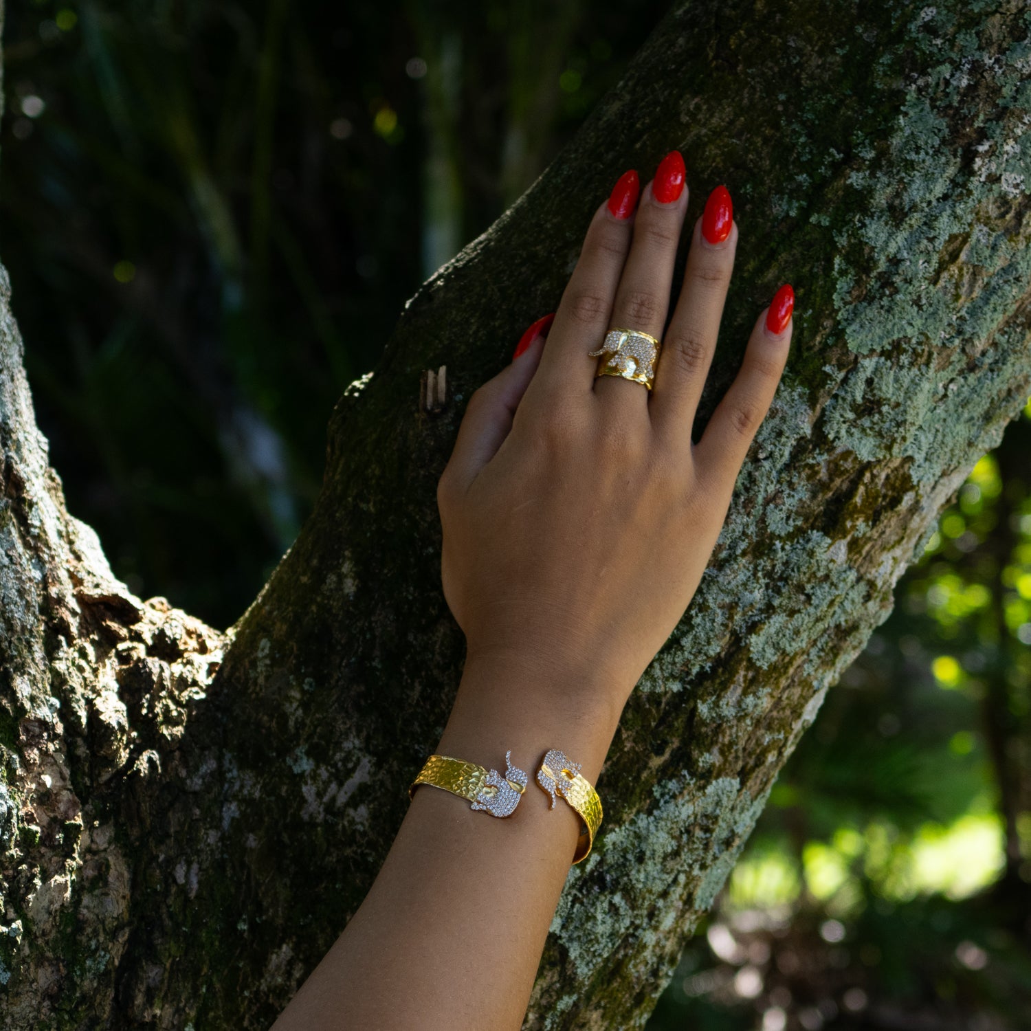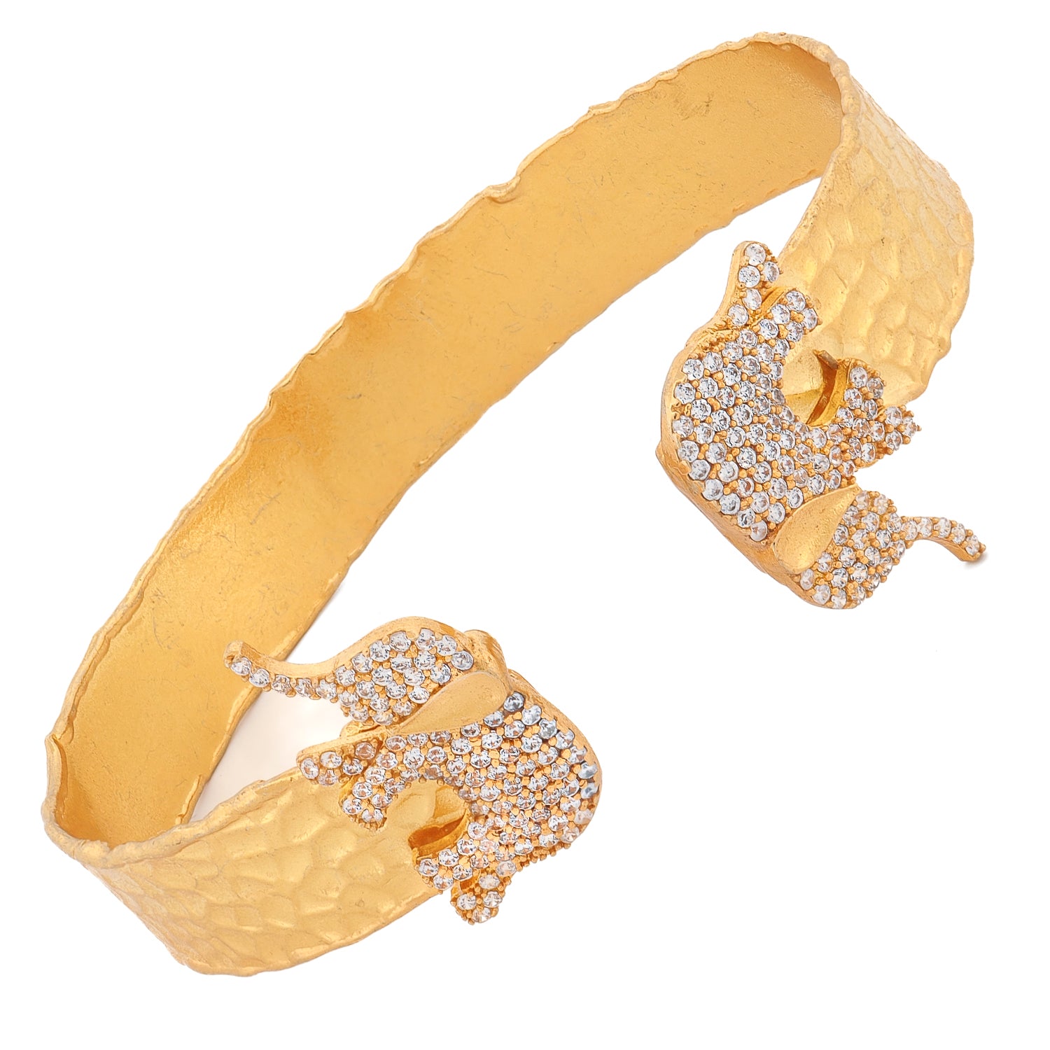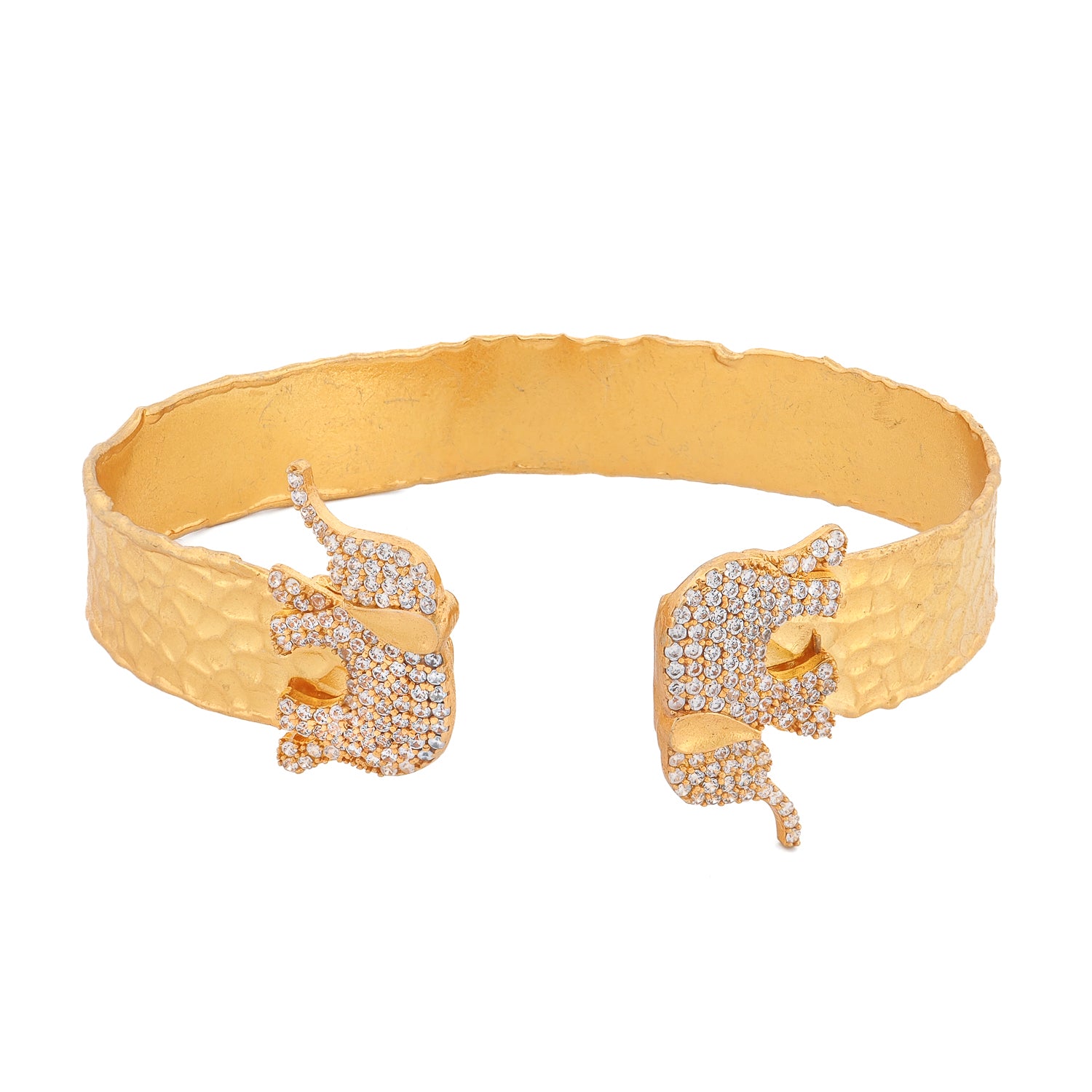 Guardian Diamond Elephant Gold Cuff Bracelet