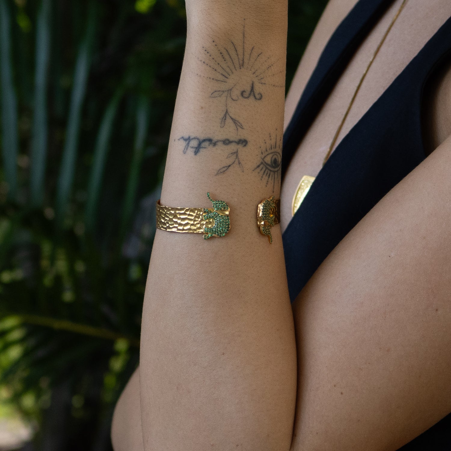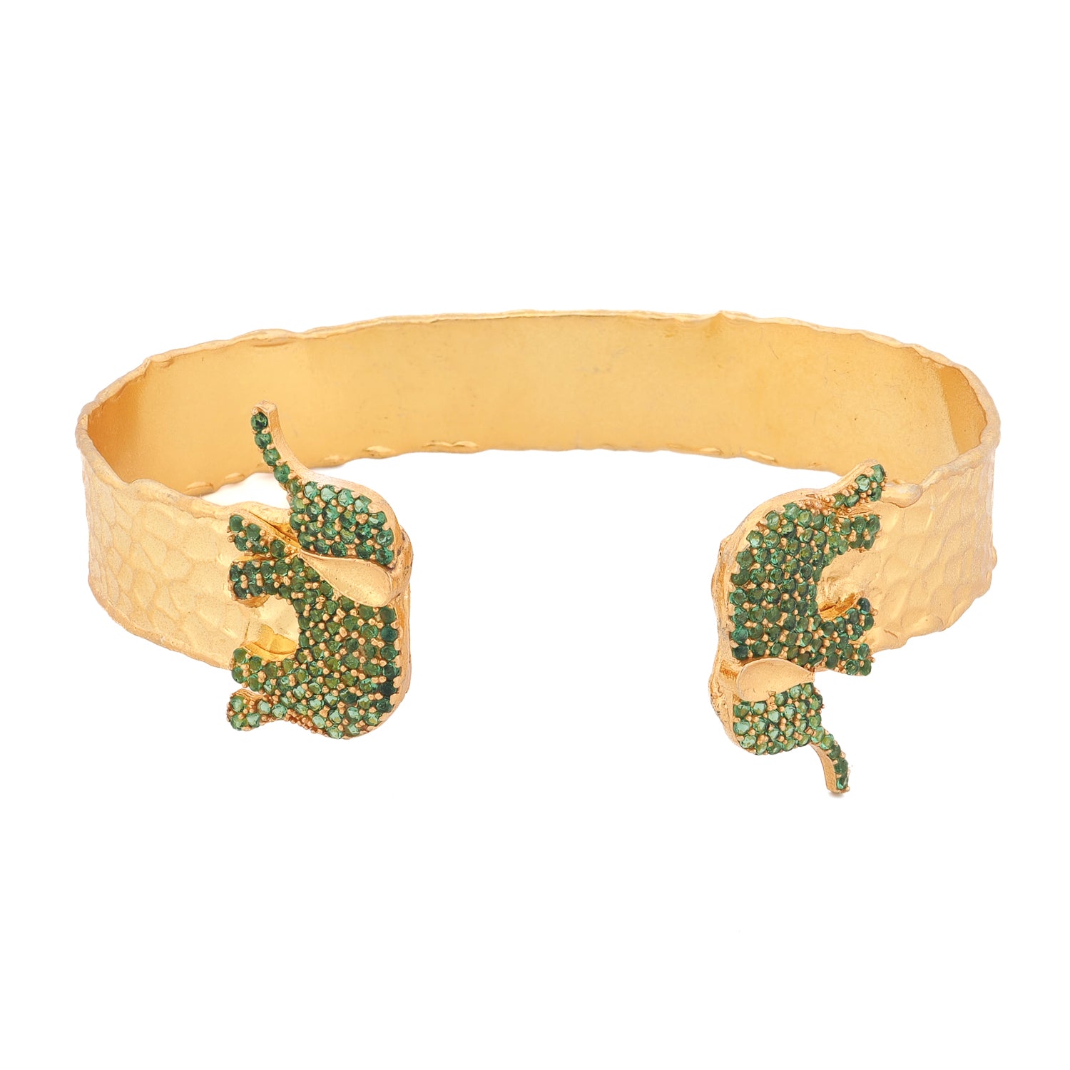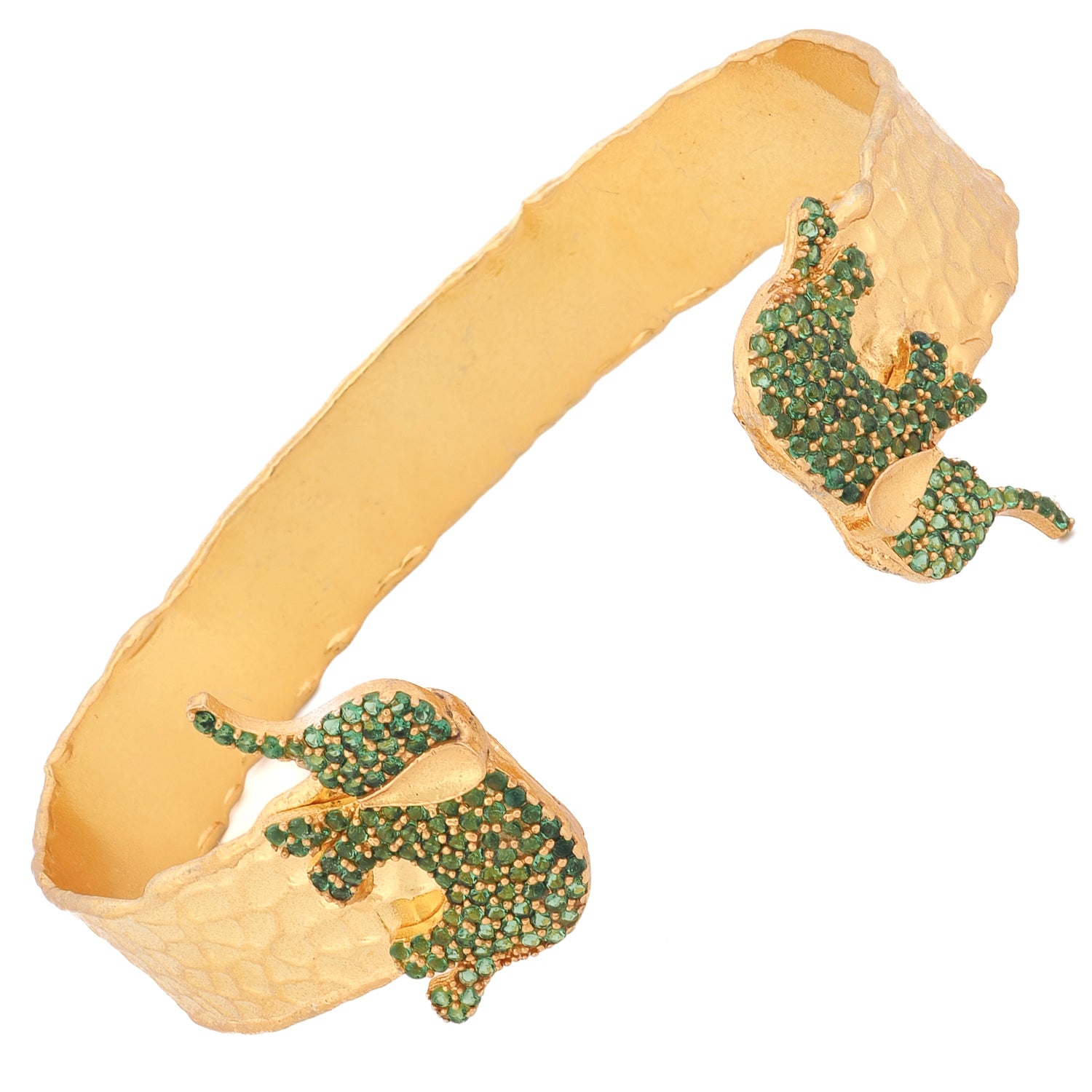Guardian Elephant Emerald Gold Cuff Bracelet
