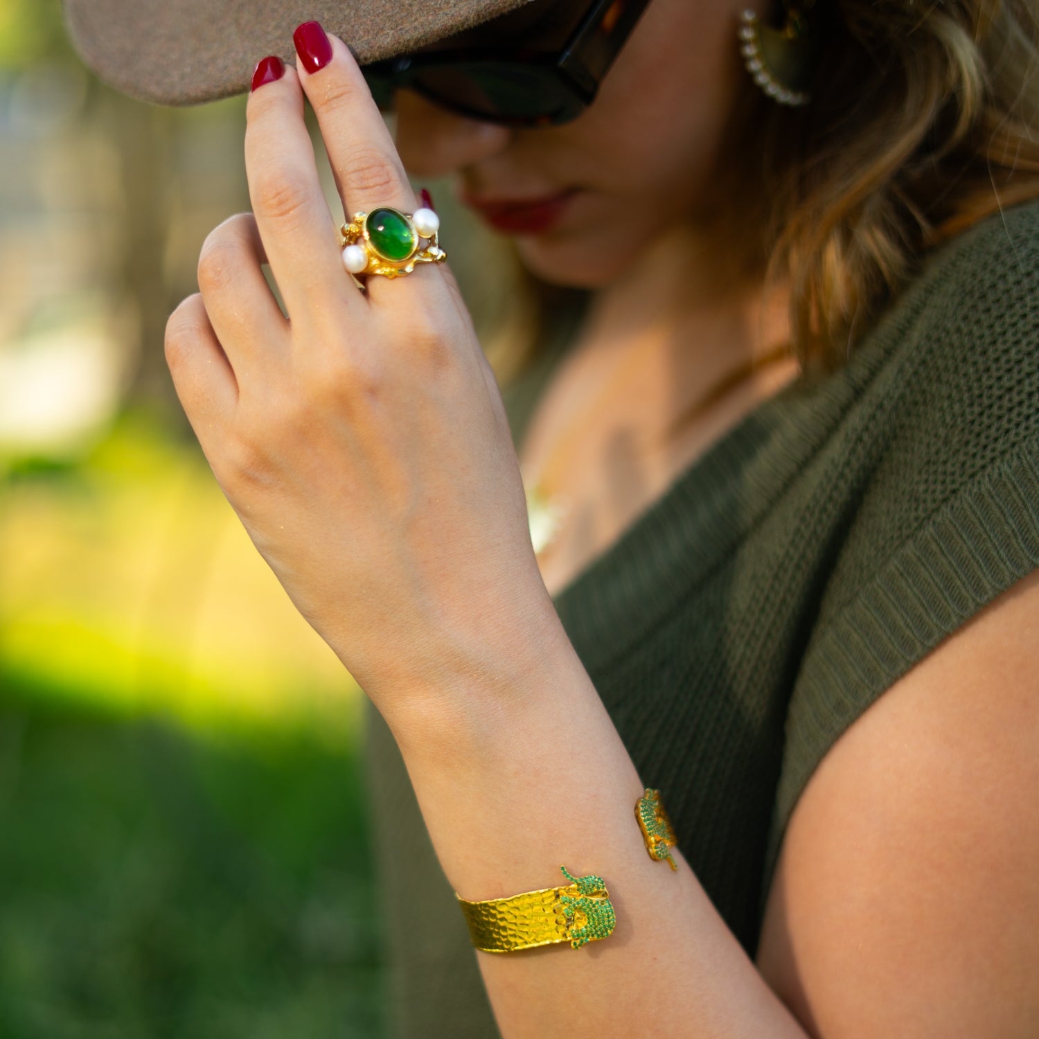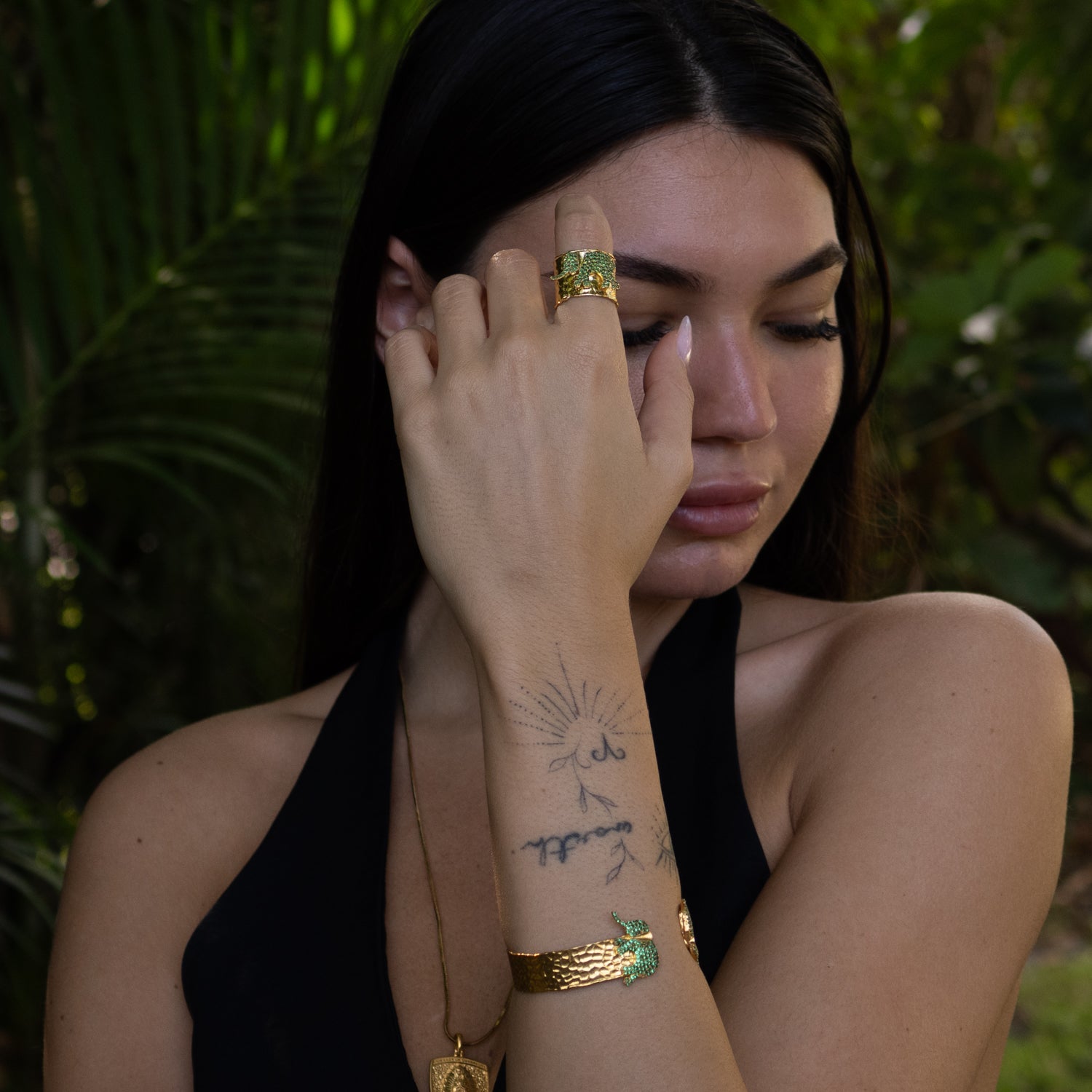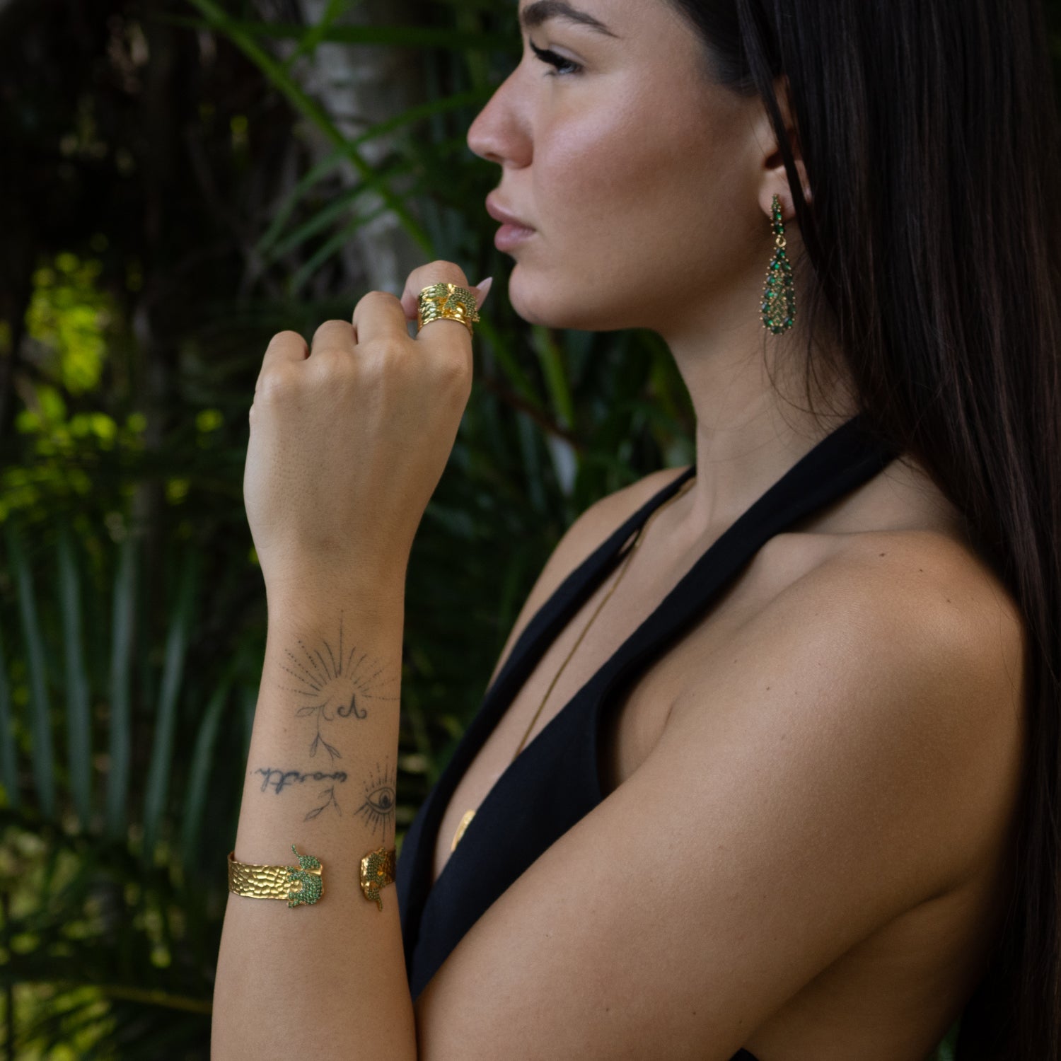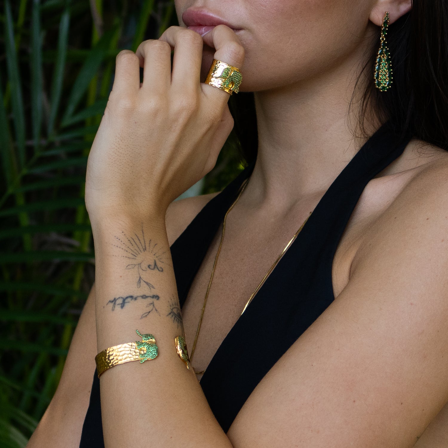 Guardian Elephant Emerald Gold Cuff Bracelet