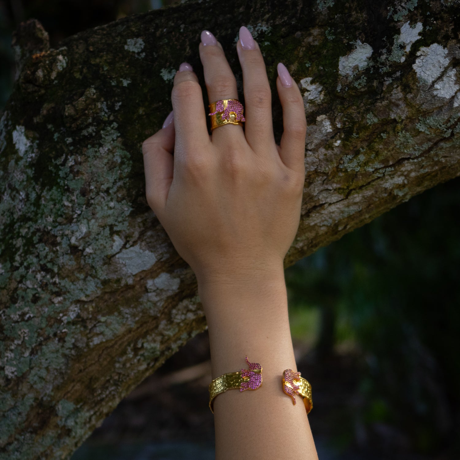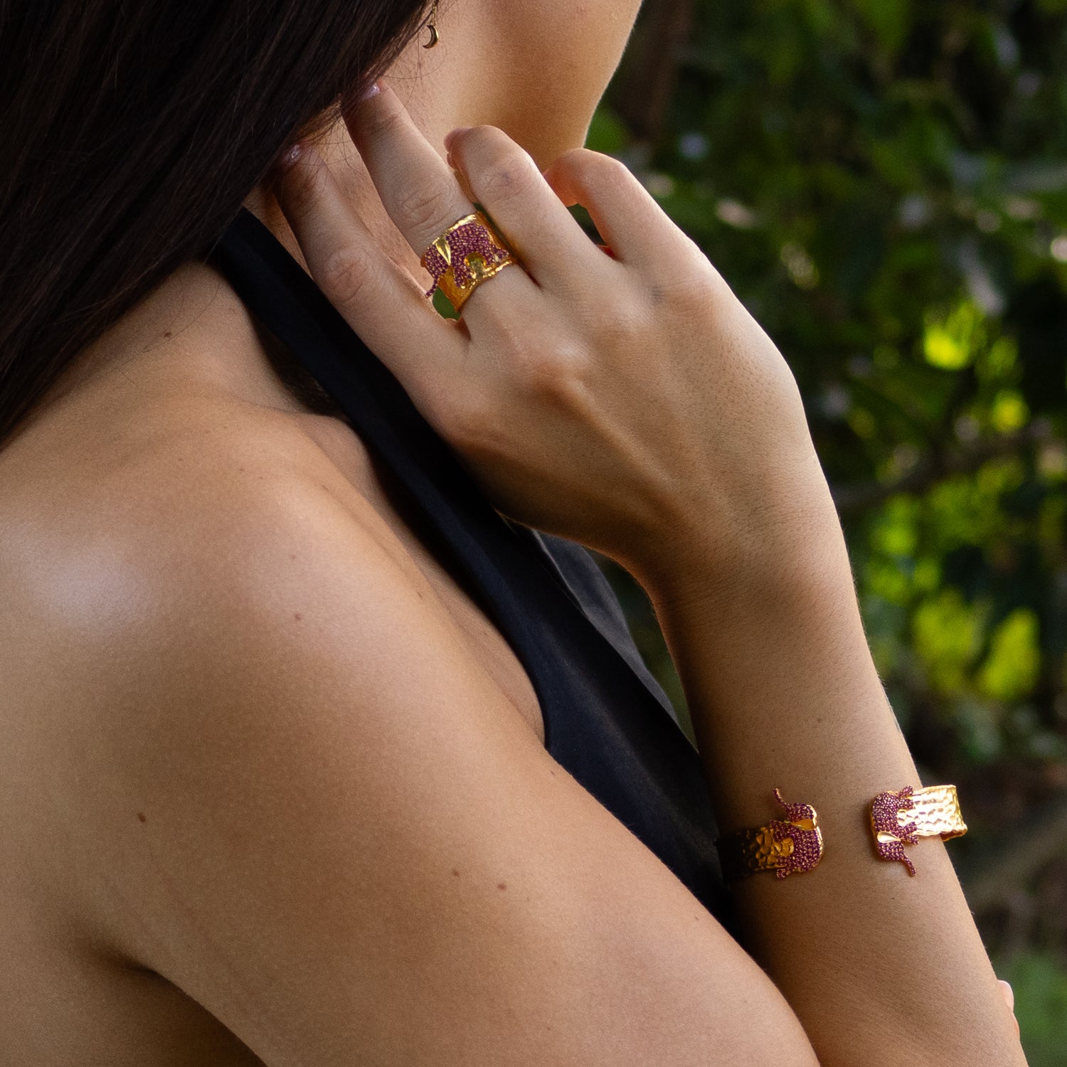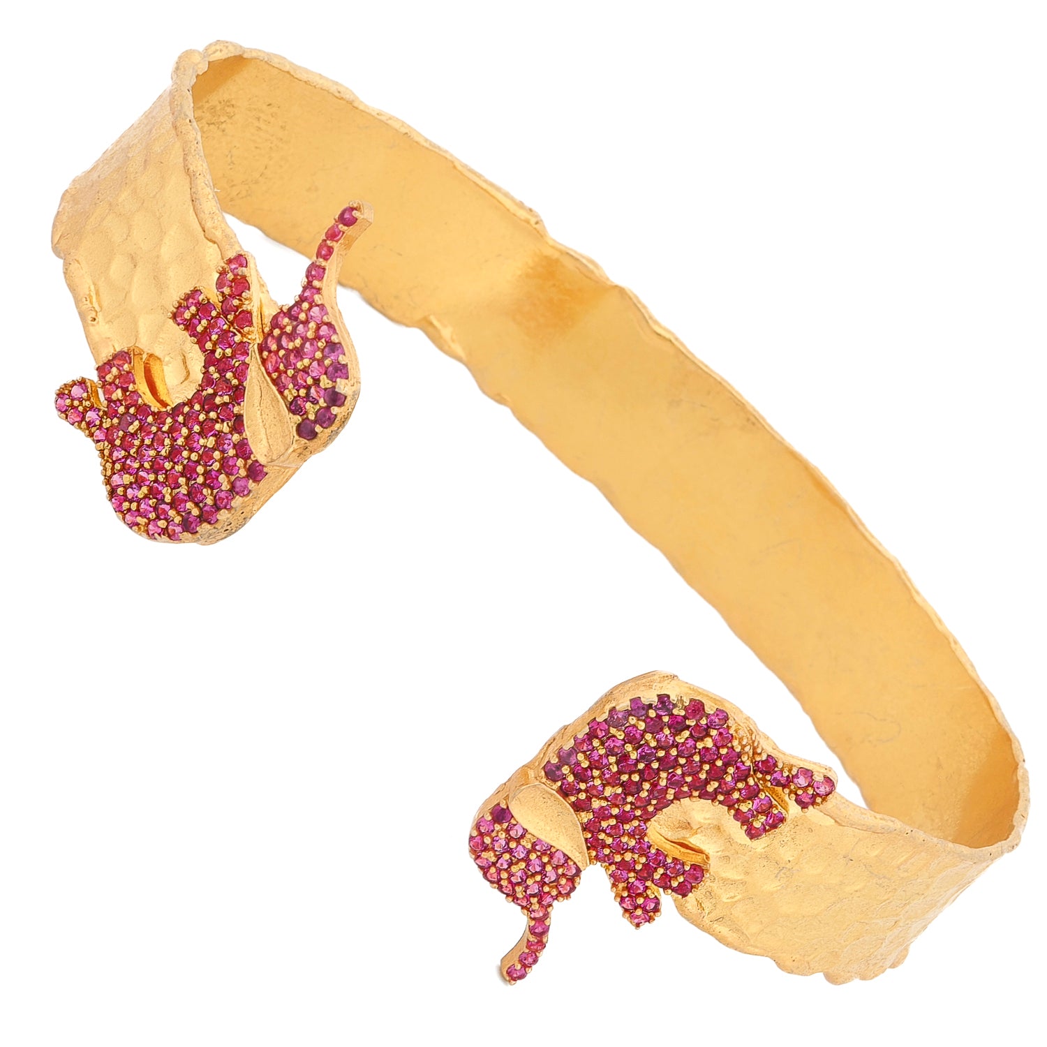 Guardian Ruby Elephant Gold Cuff Bracelet
