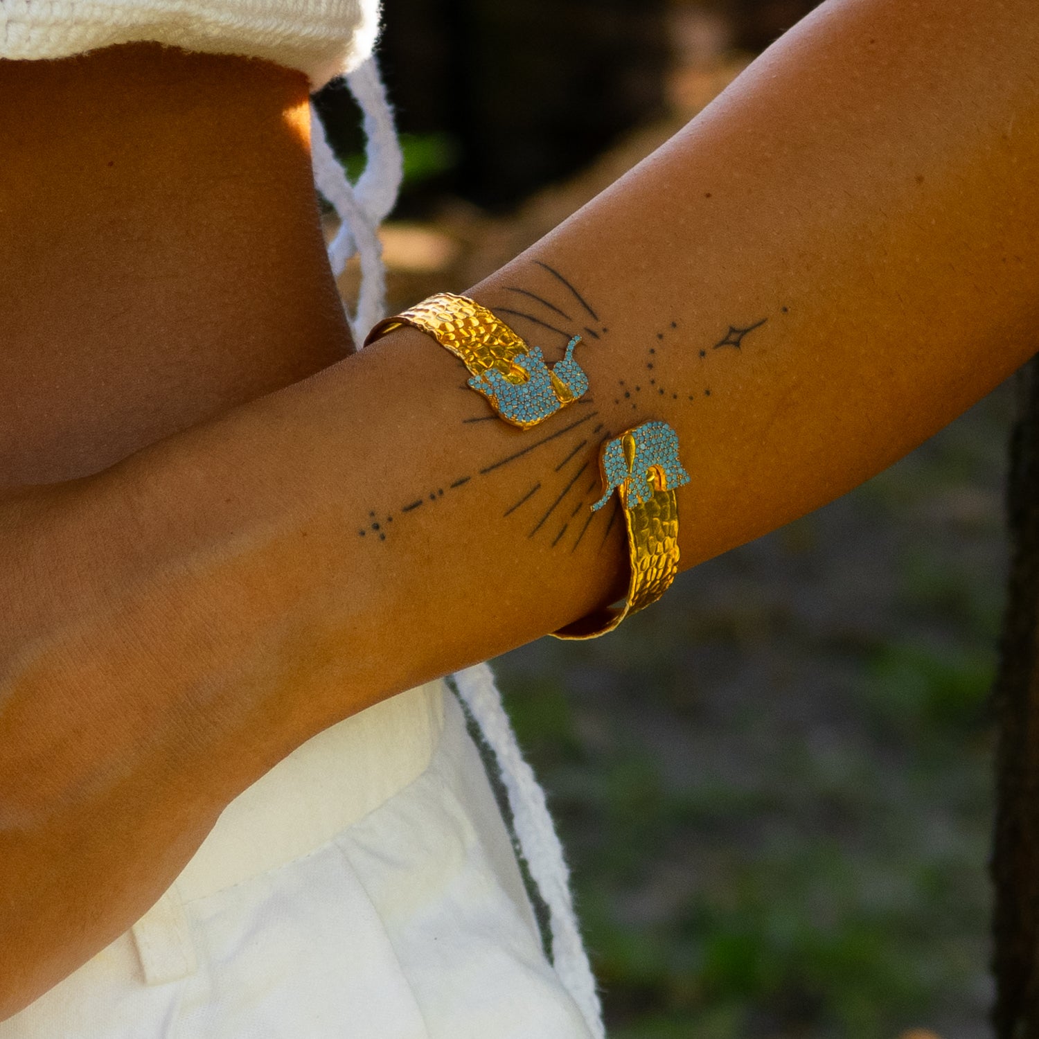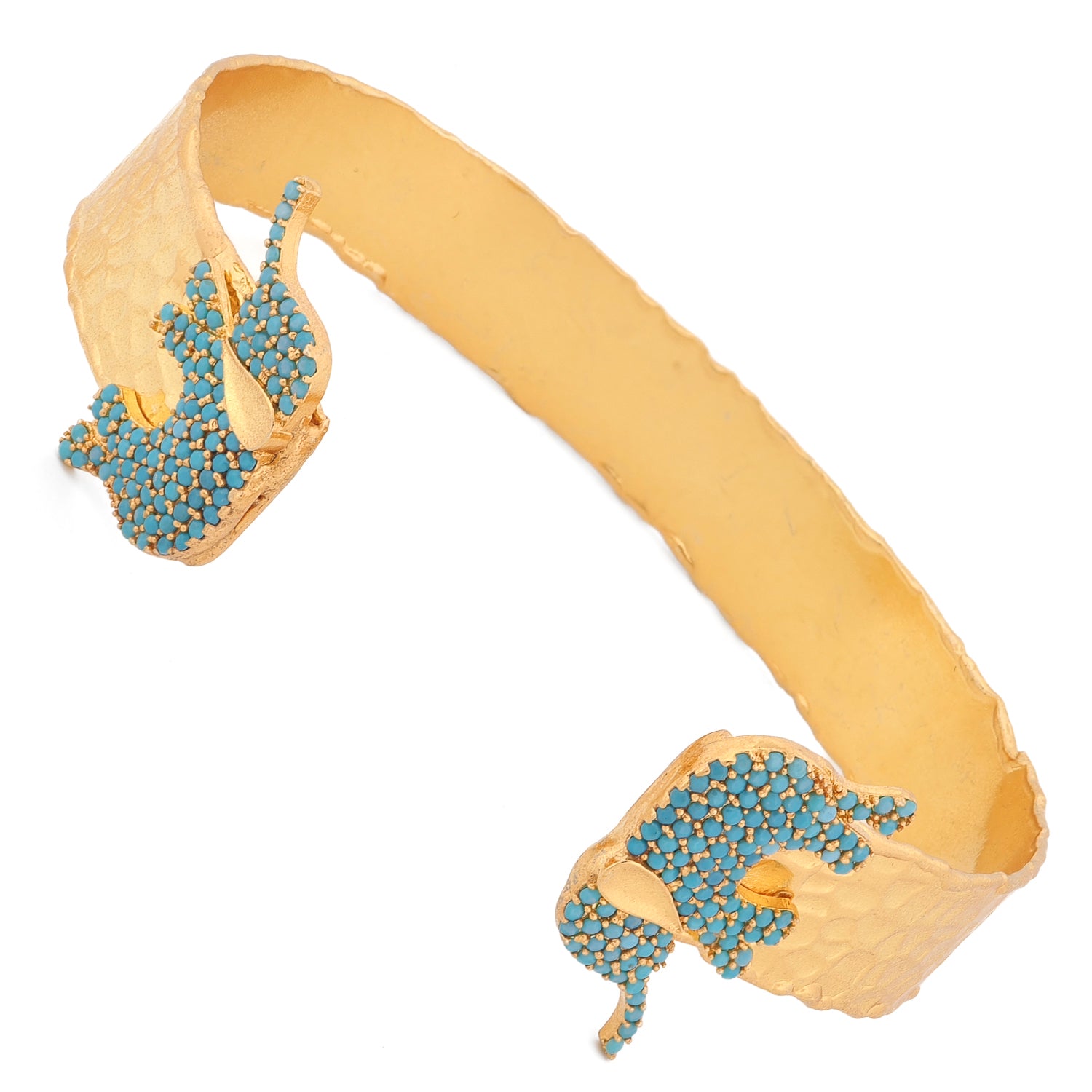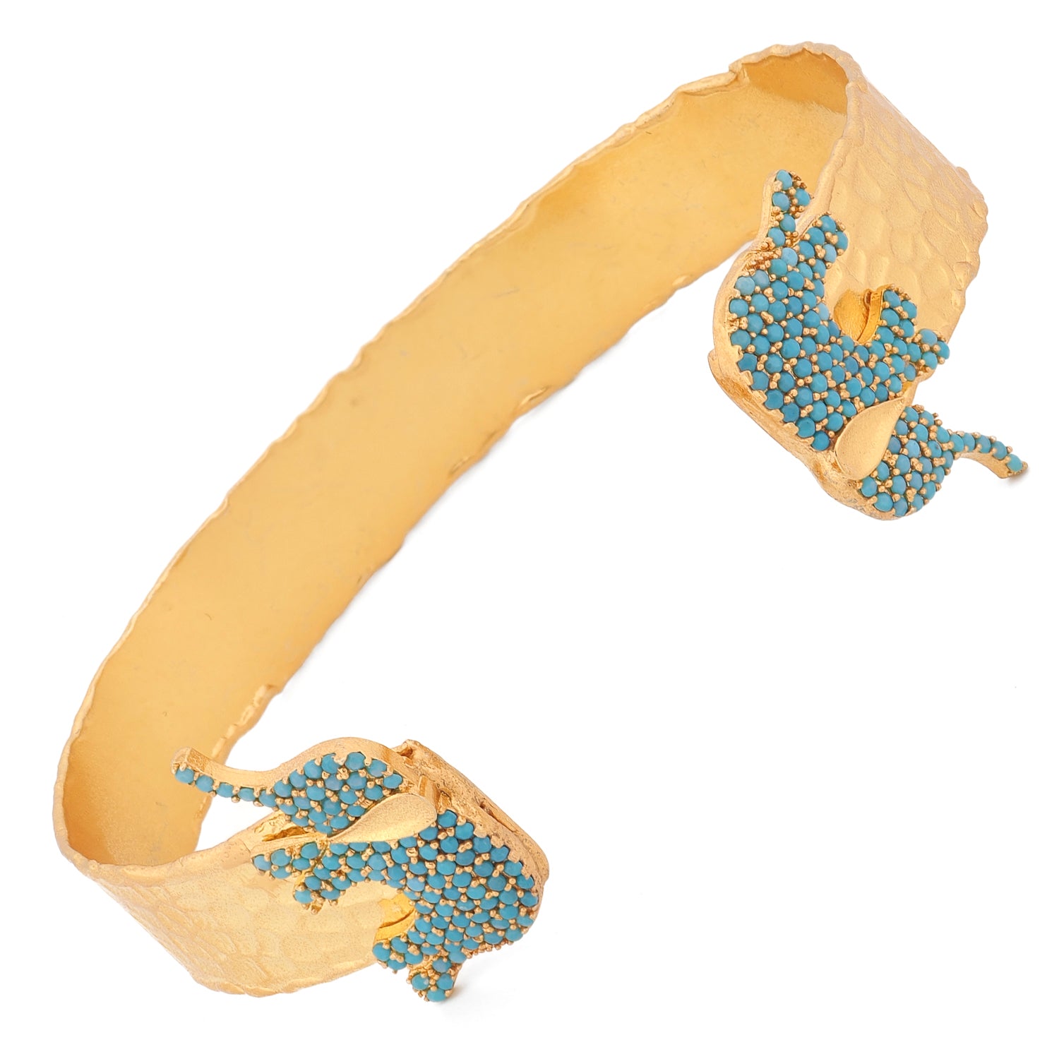 Guardian Turquoise Elephant Gold Cuff Bracelet