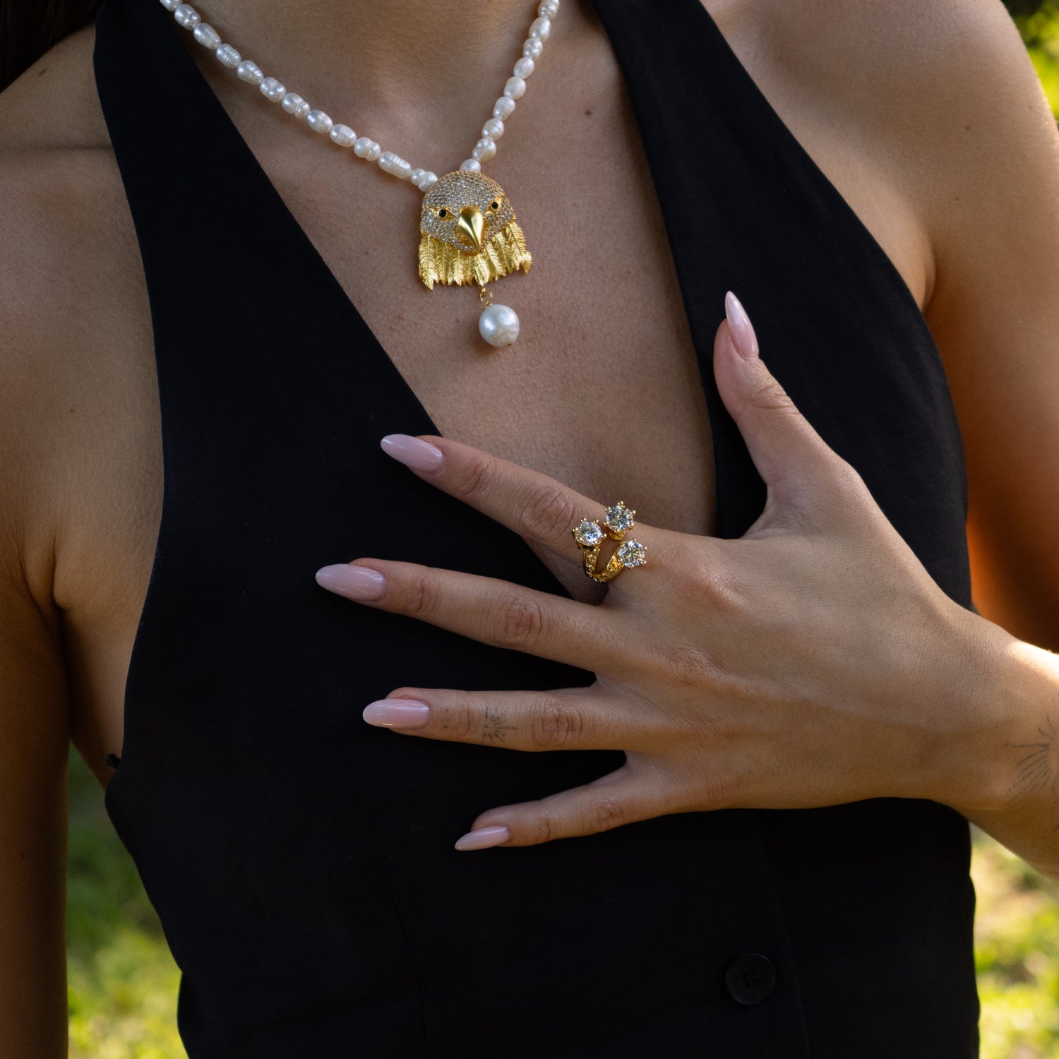 Ocean Goddess Multicolor Starfish Gold Adjustable Ring
