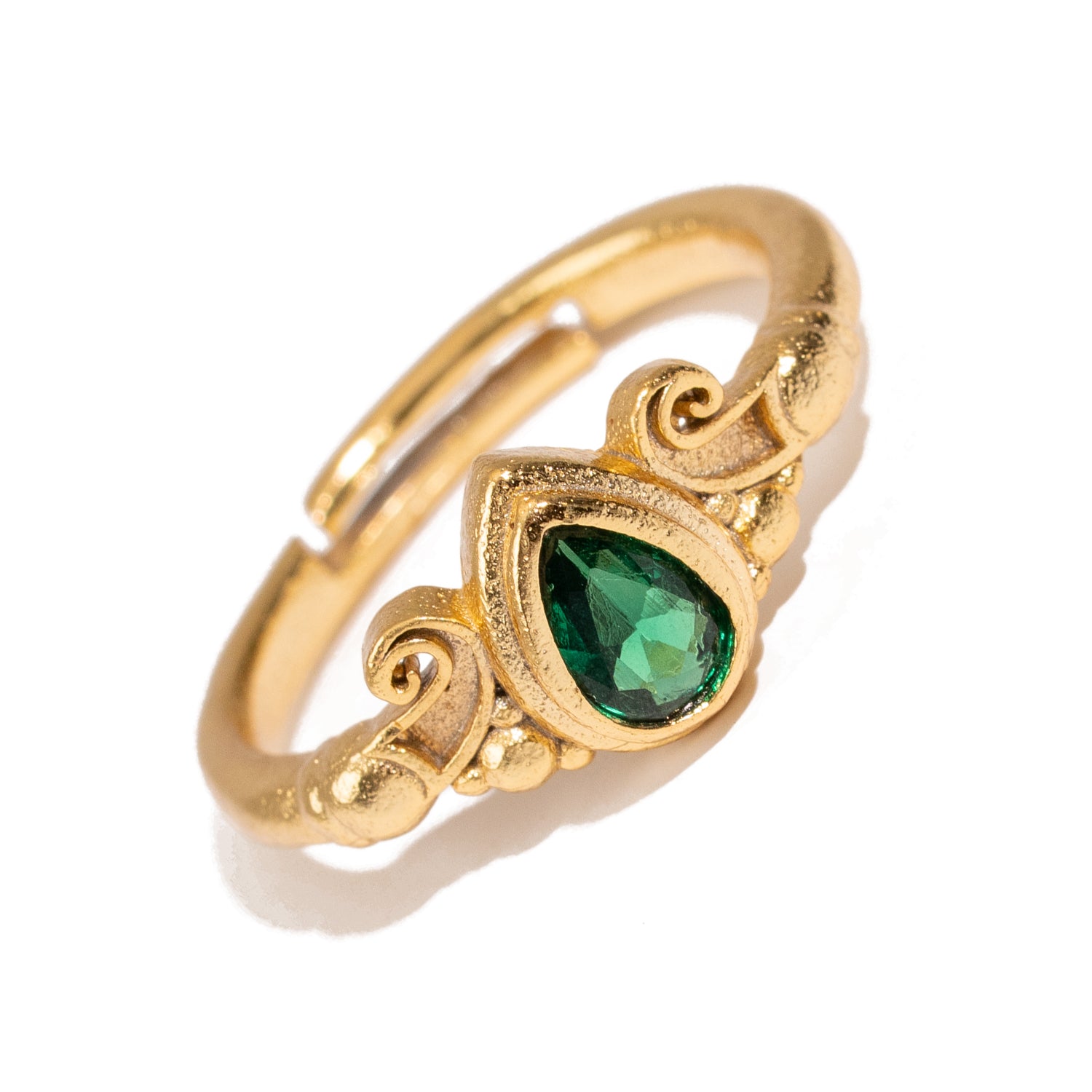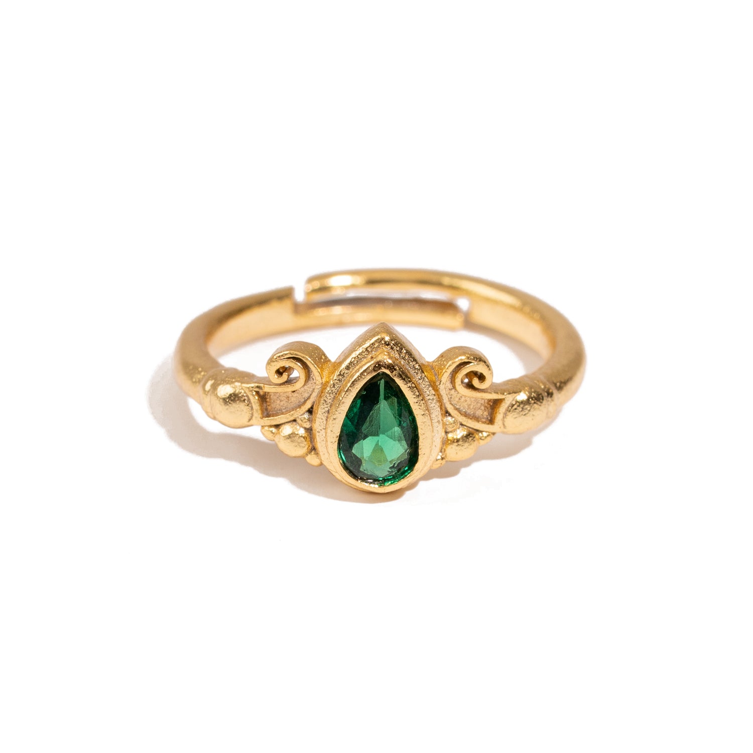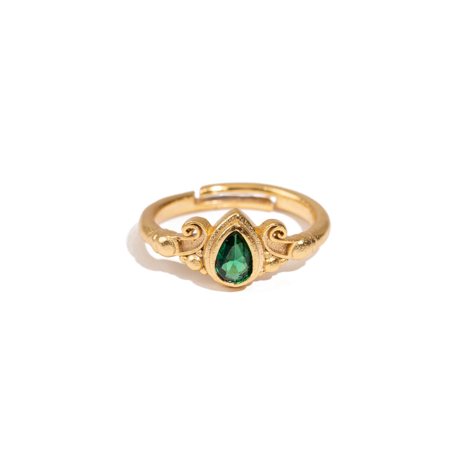 Emerald Teardrop Gemstone Adjustable Gold Ring