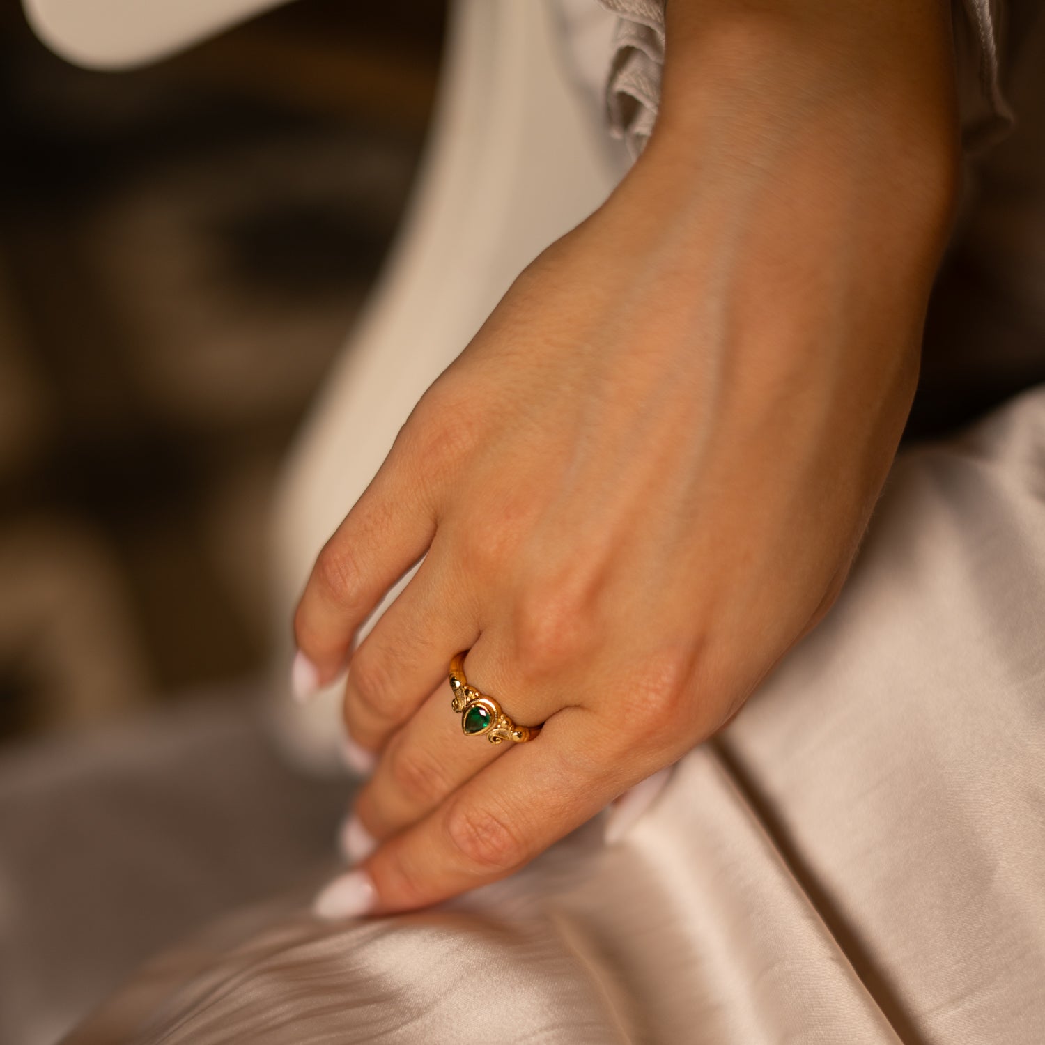 Teardrop Emerald Gemstone Gold Ring