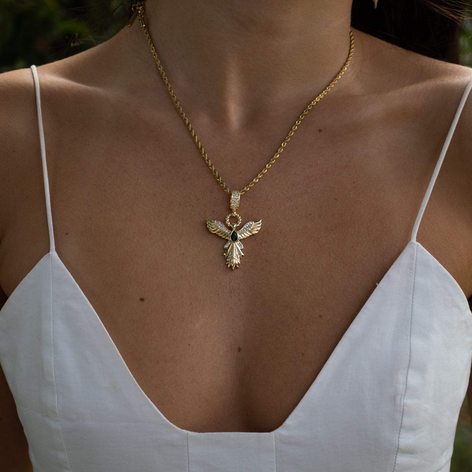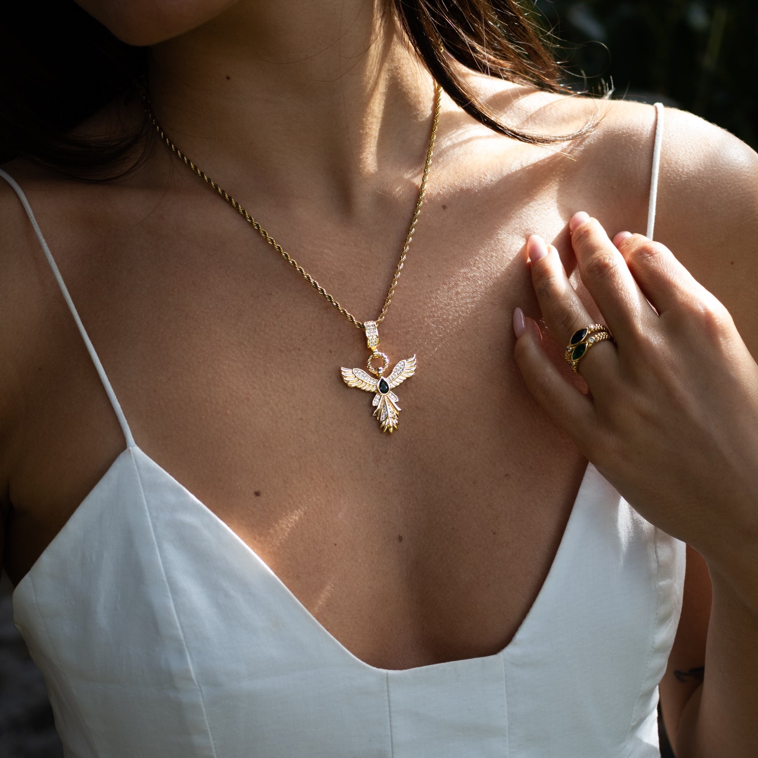 Emerald Eyed Mythology Snake Gold & Diamond Pendant Bold Chain Necklace