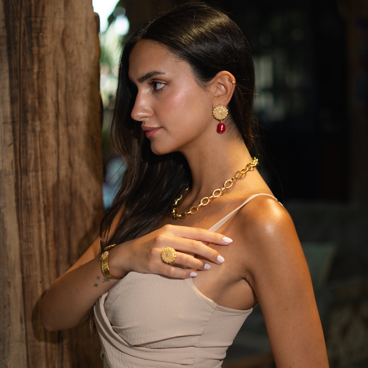 Ruby & Diamond Teardrop Glow Gold Adjustable Ring