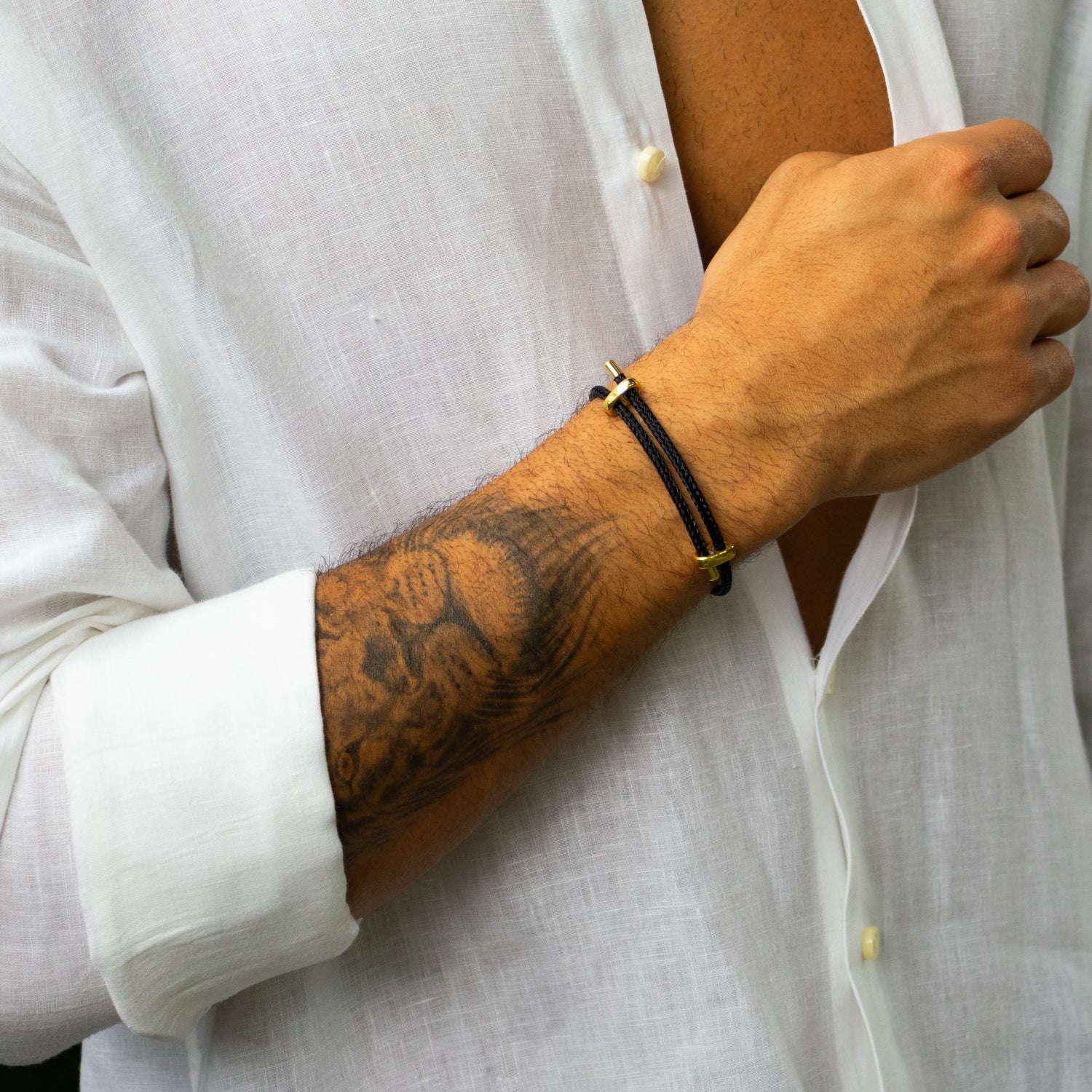 Divine Shield Black Zircon Gold Rope Unisex Bracelet