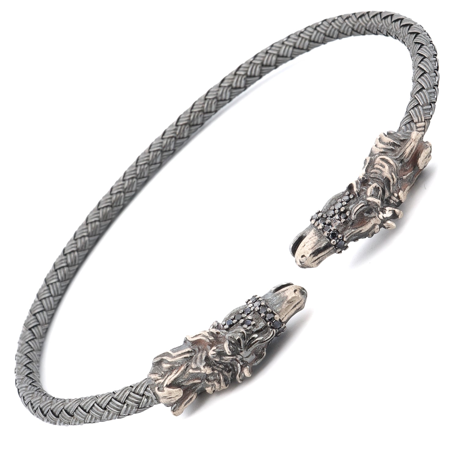 Wolf Fang Men’s Sterling Silver Black Diamond Bracelet