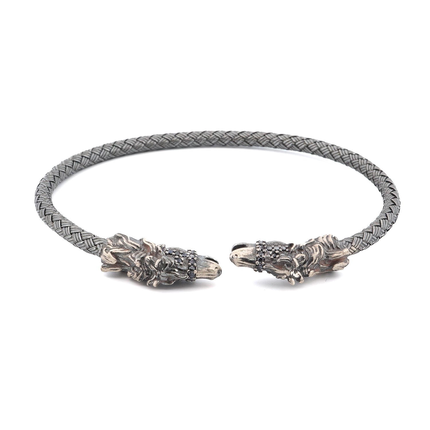 Twin Wolf Men’s Sterling Silver Bold Bracelet