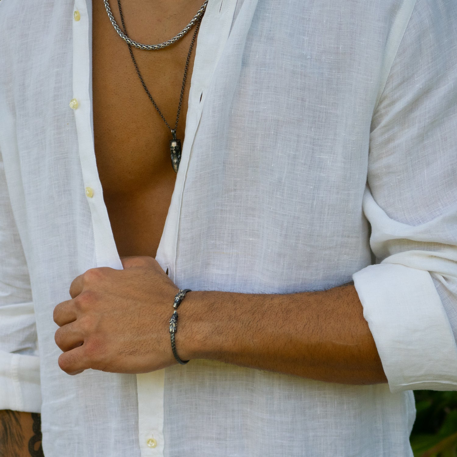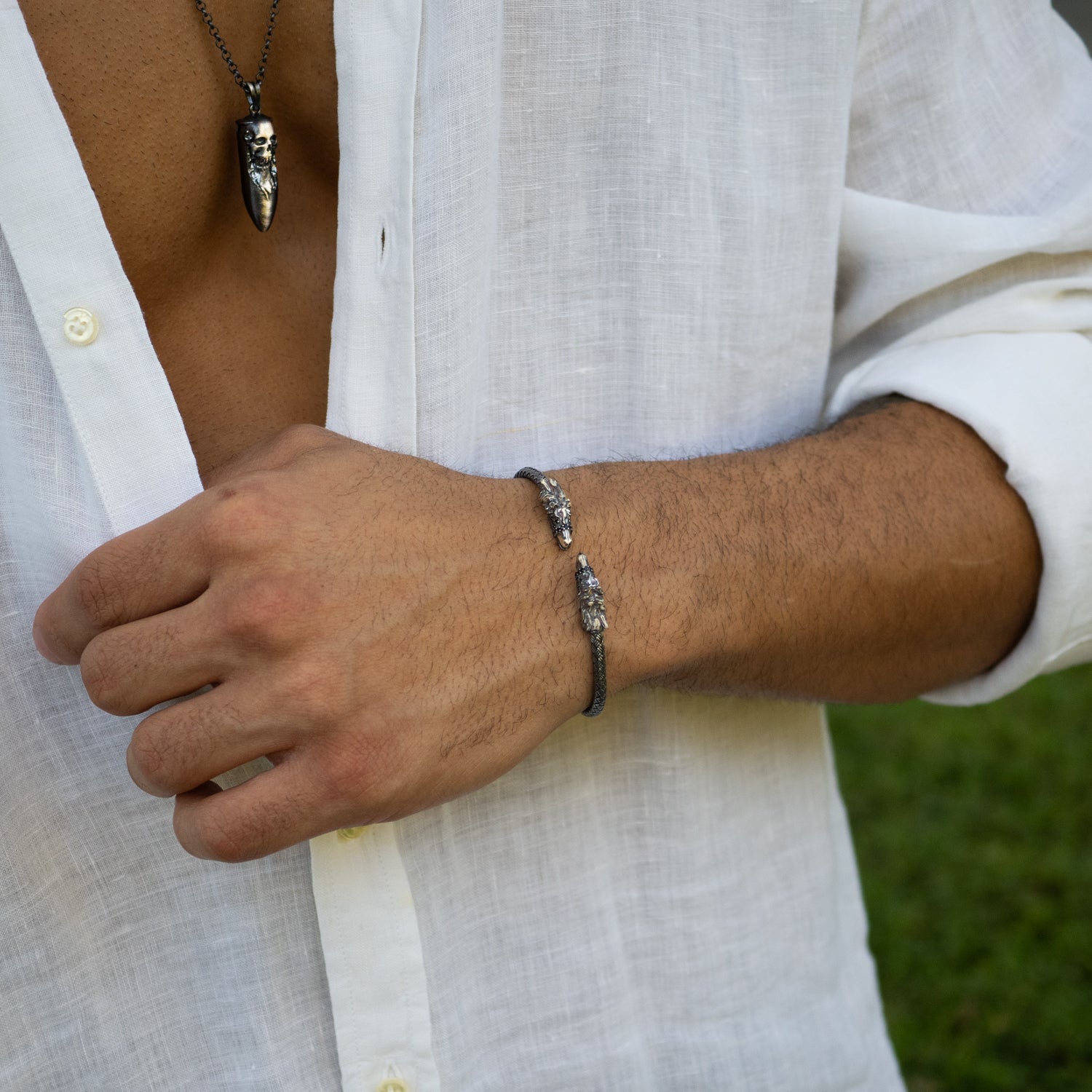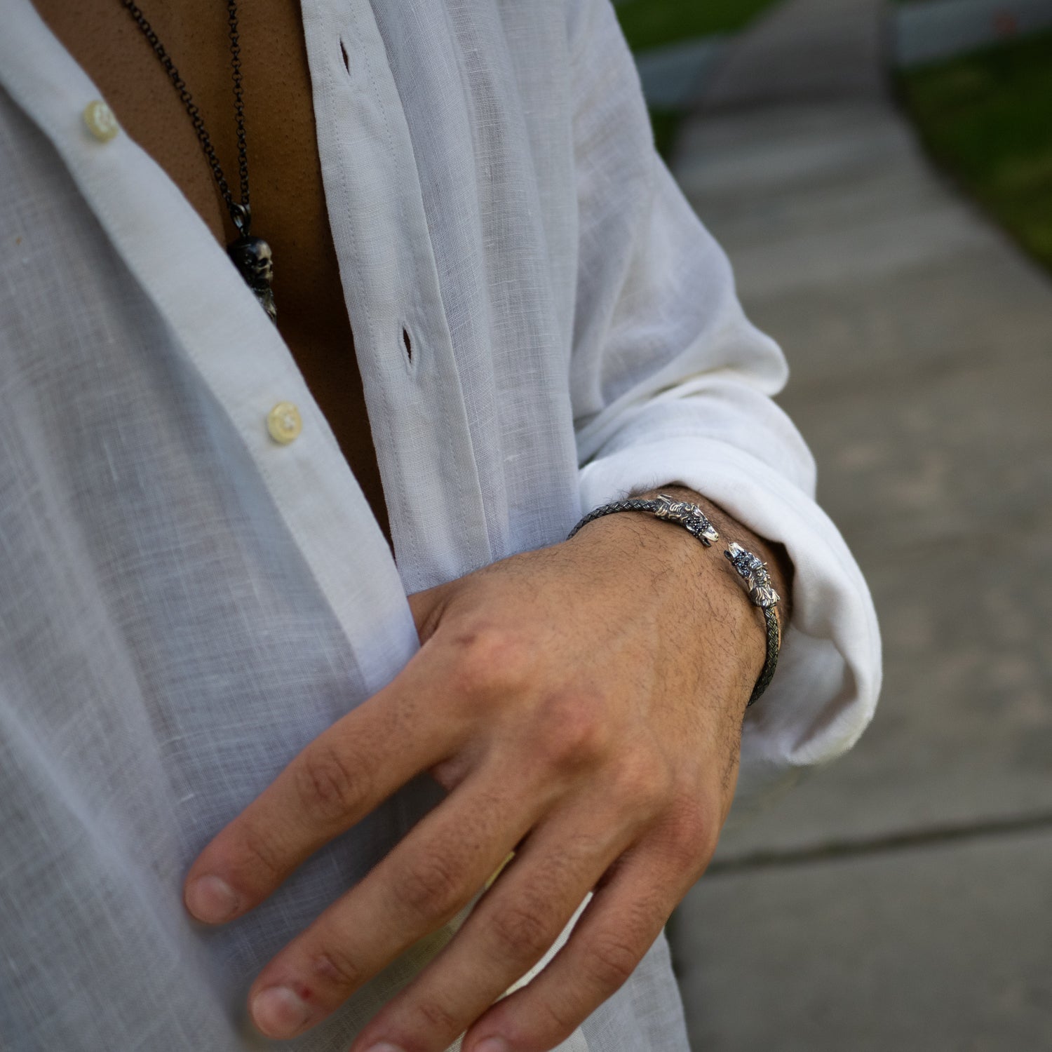 Fierce Twin Dragon Men’s Sterling Silver Adjustable Bracelet
