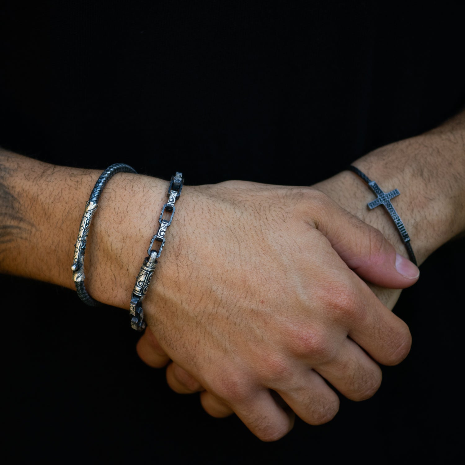 Handcrafted Sterling Silver & Leather Men’s Cuff Bracelet