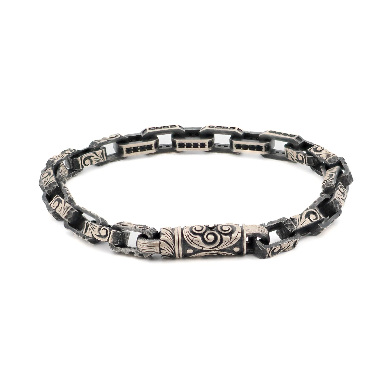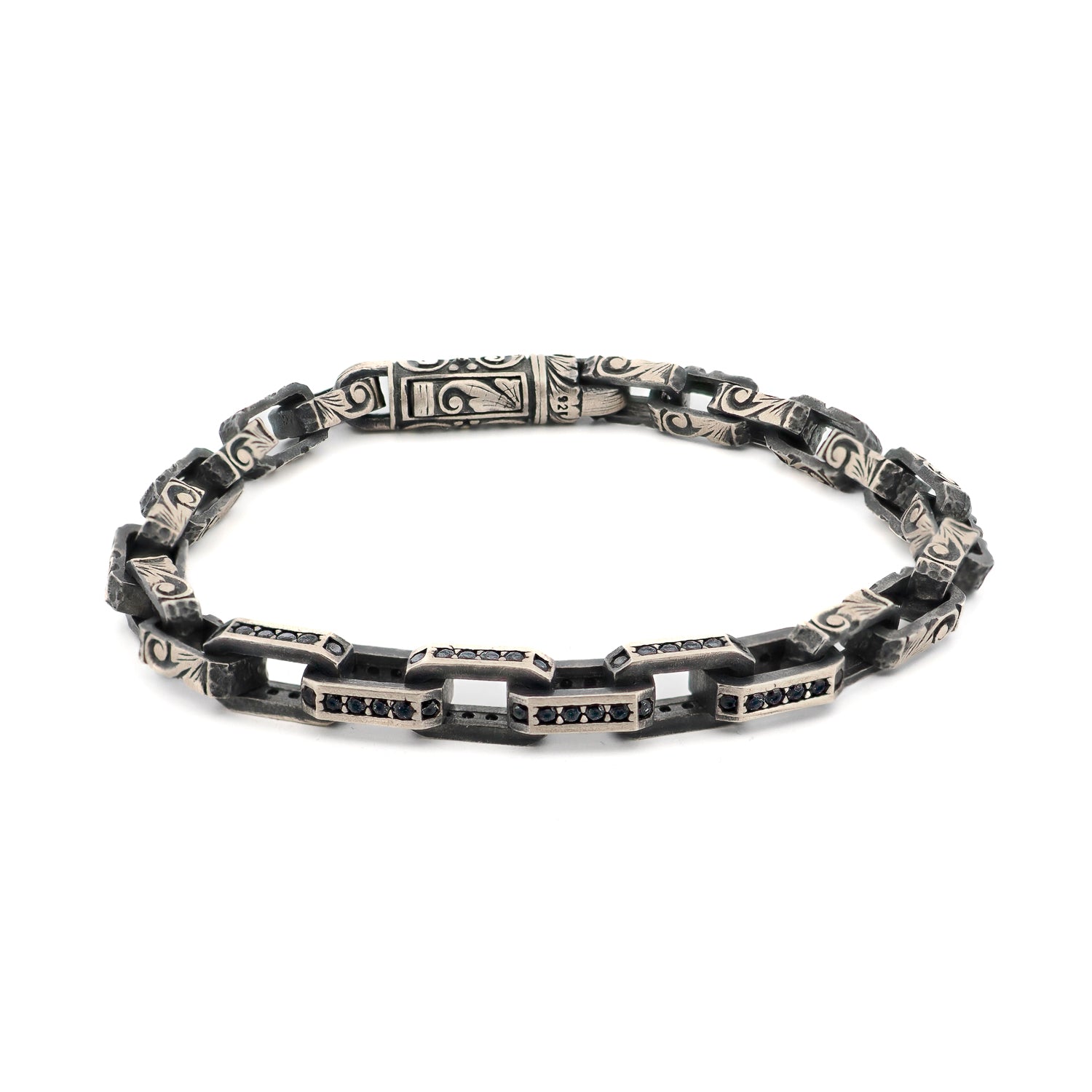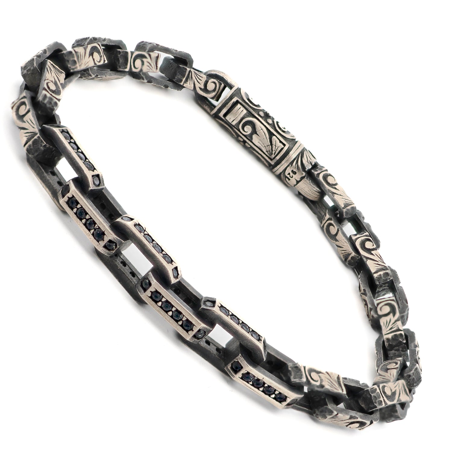Heritage Engraved Silver & Zircon Men’s Bracelet
