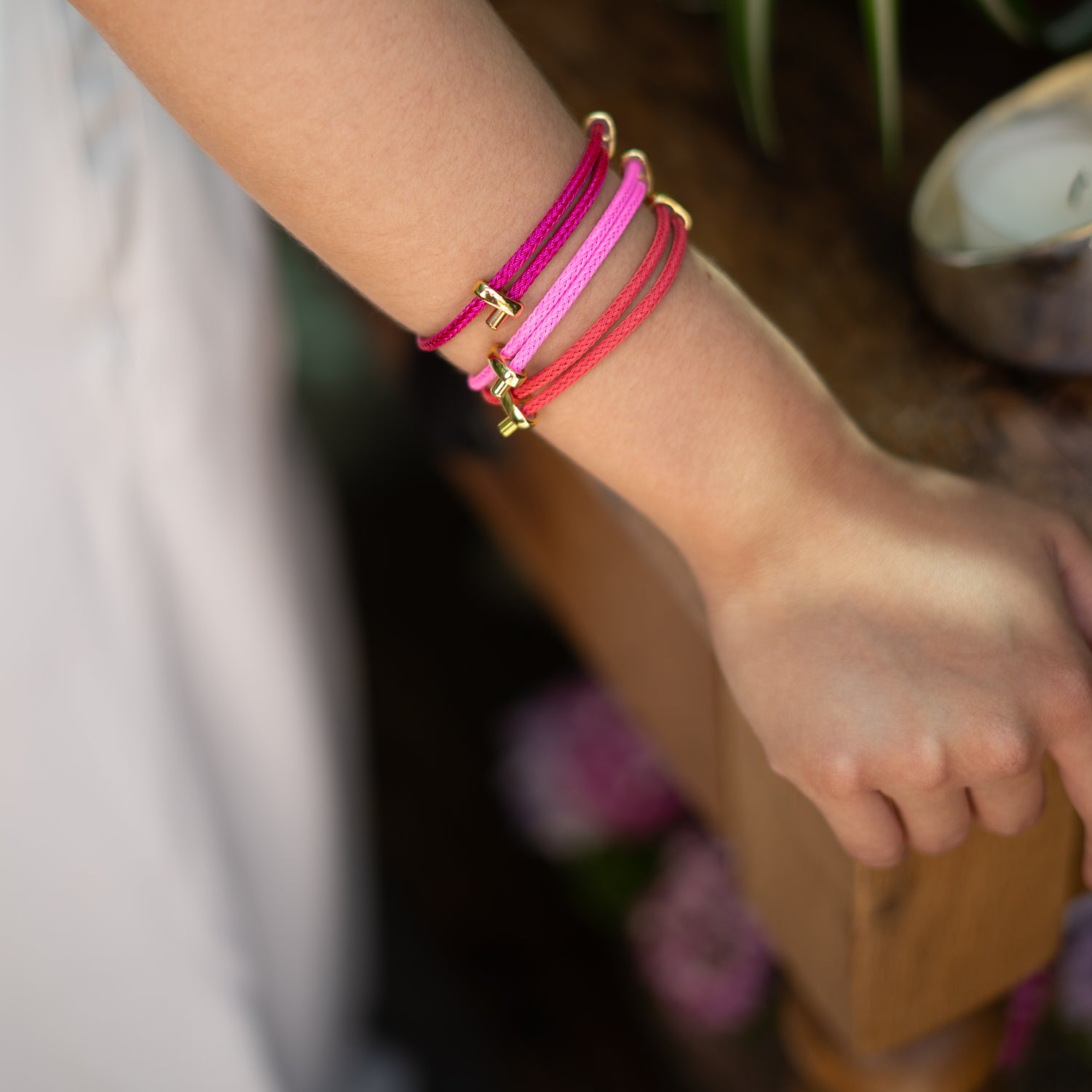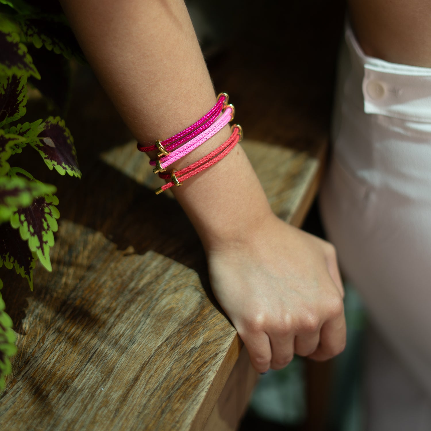 Coral Red Glow Adjustable Gold Rope Bracelet