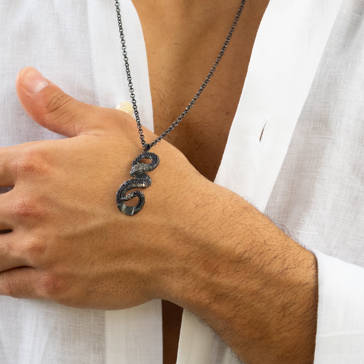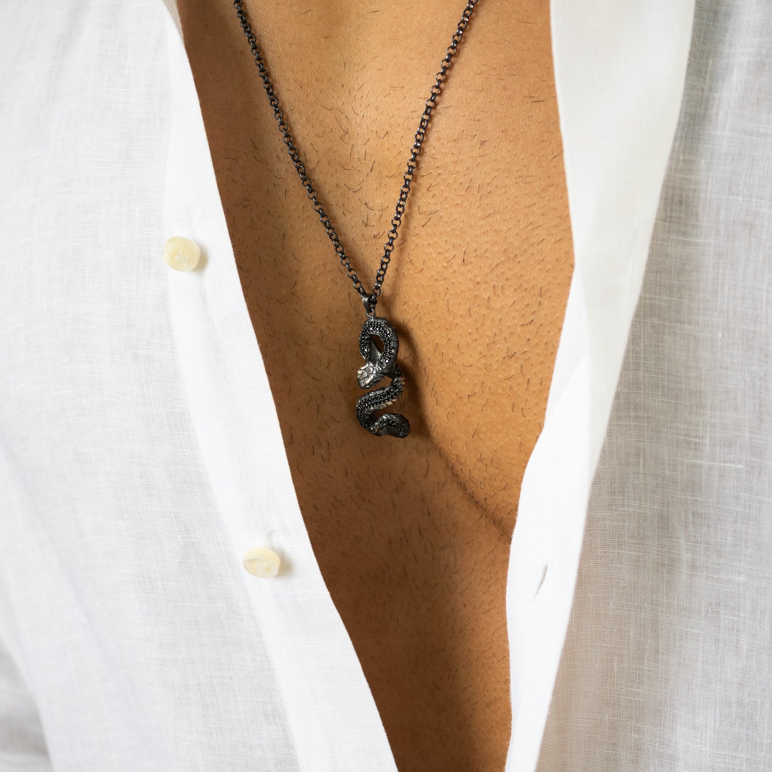 Serpent Guardian Men’s Sterling Silver Necklace