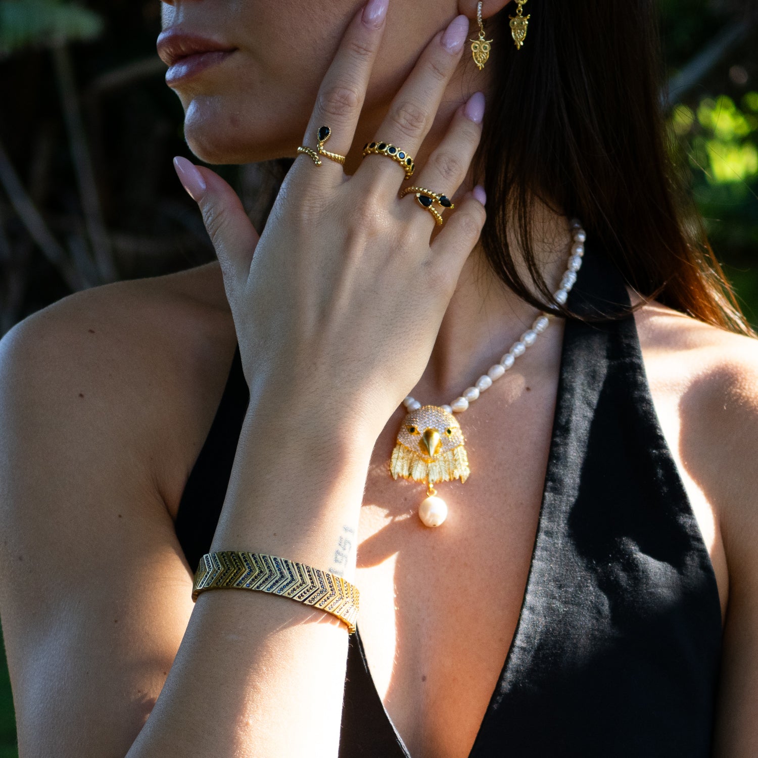 Mystic Black Onyx Evil Eye Gold Adjustable Band Ring