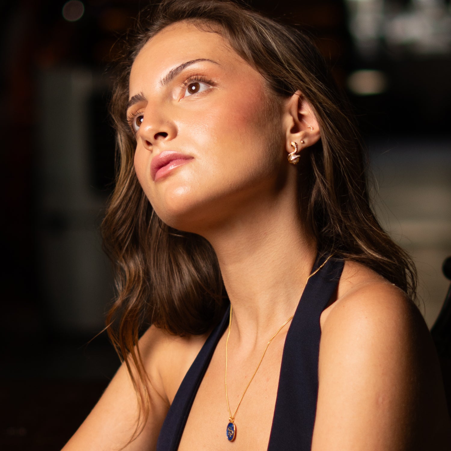Black Onyx & Gold Triangle Pendant Evil Eye Talisman Necklace