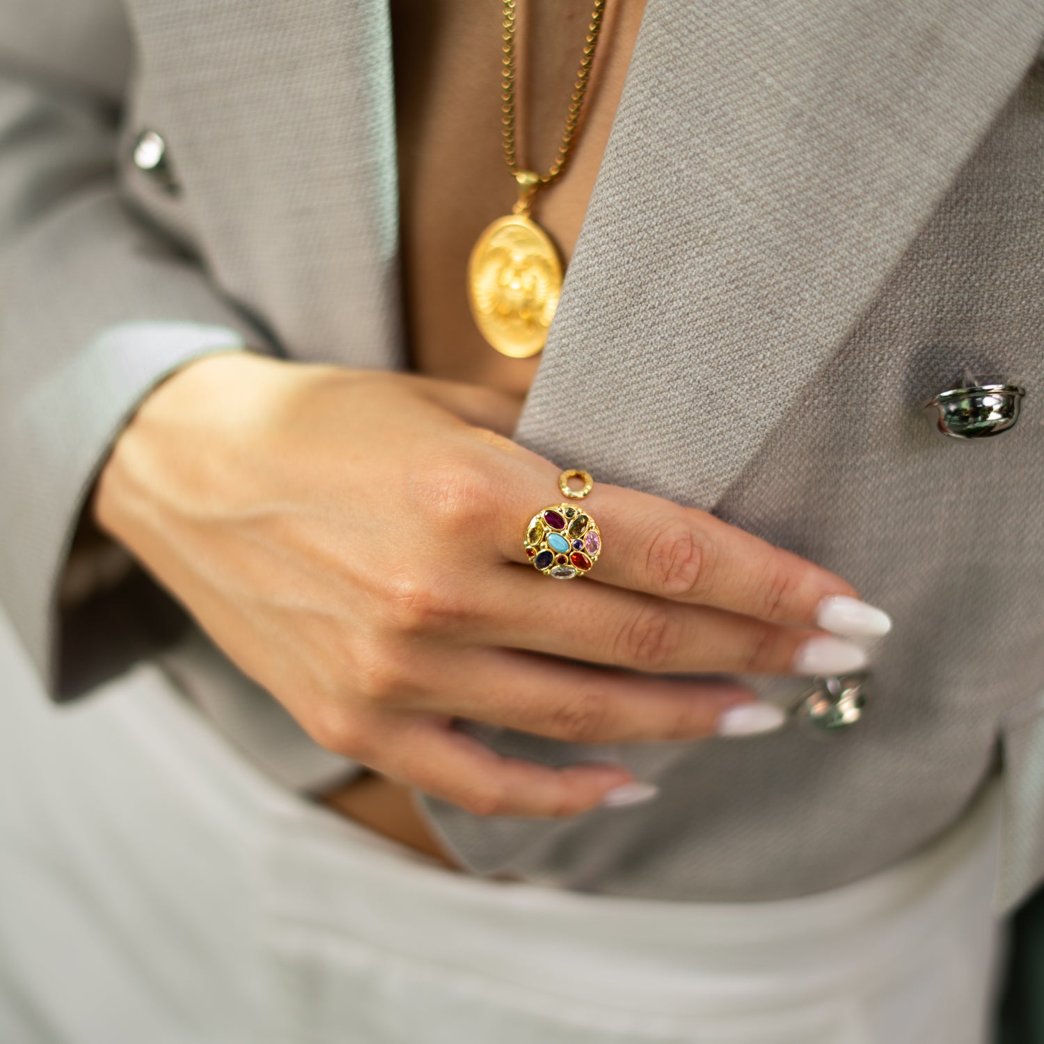 Celestial Harmony Multi Gemstone Gold Cuff Ring