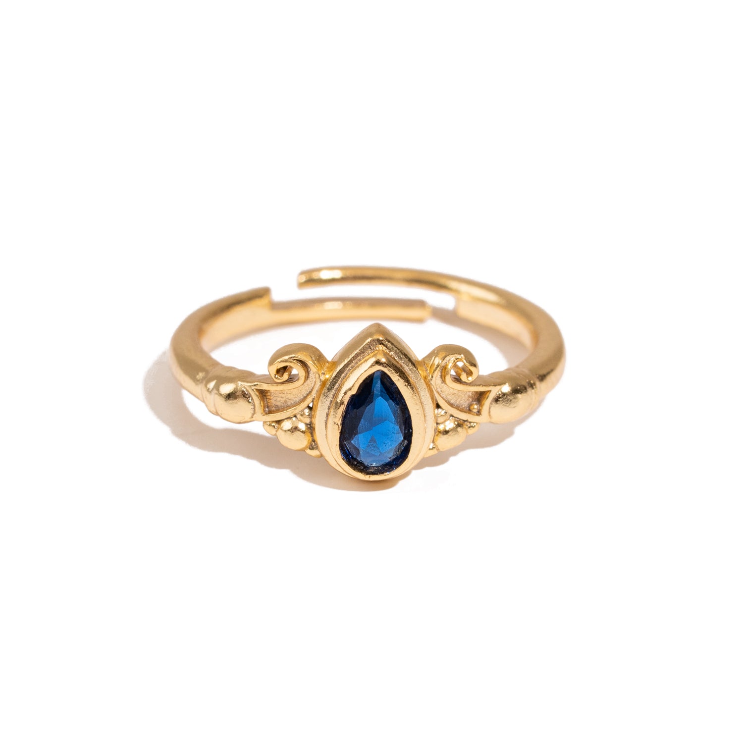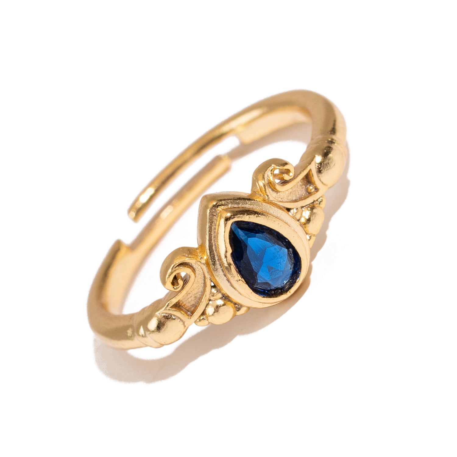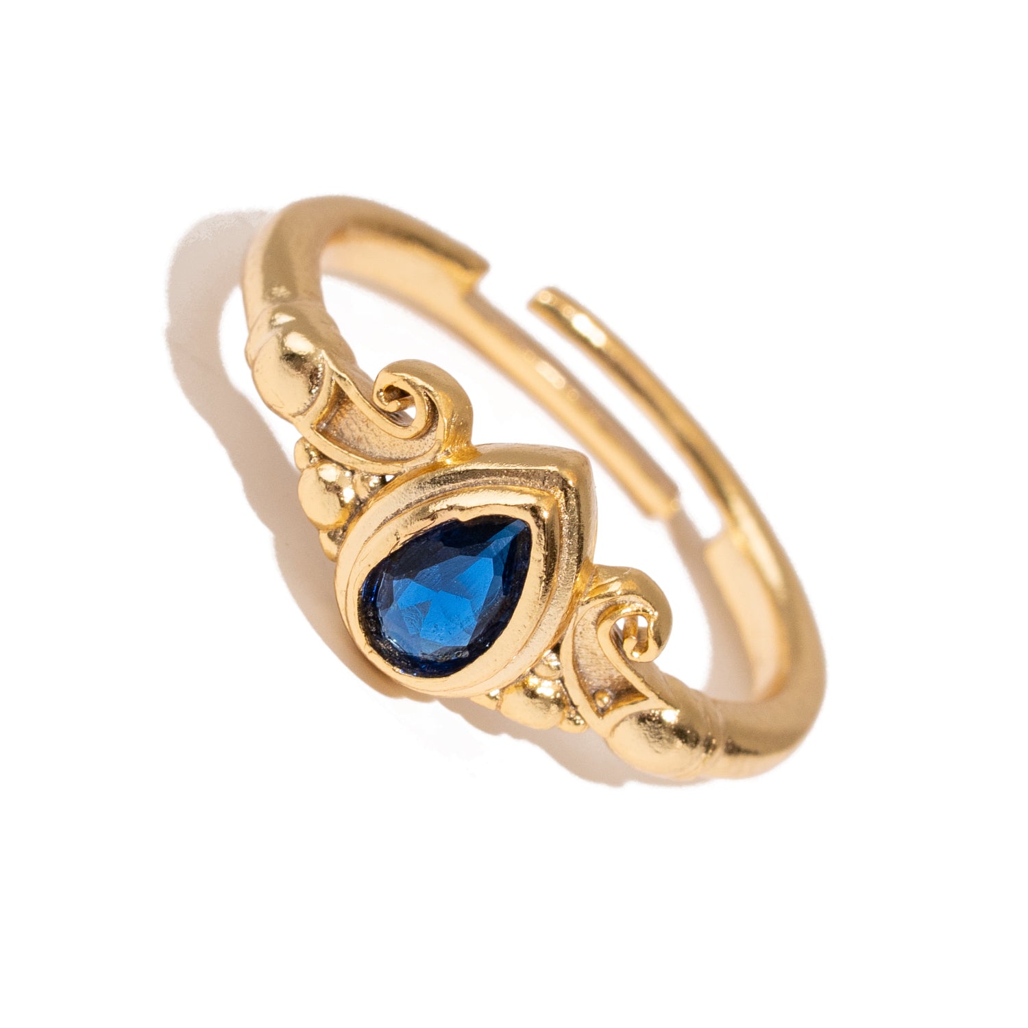 Sapphire Teardrop Glow Gold Adjustable Ring