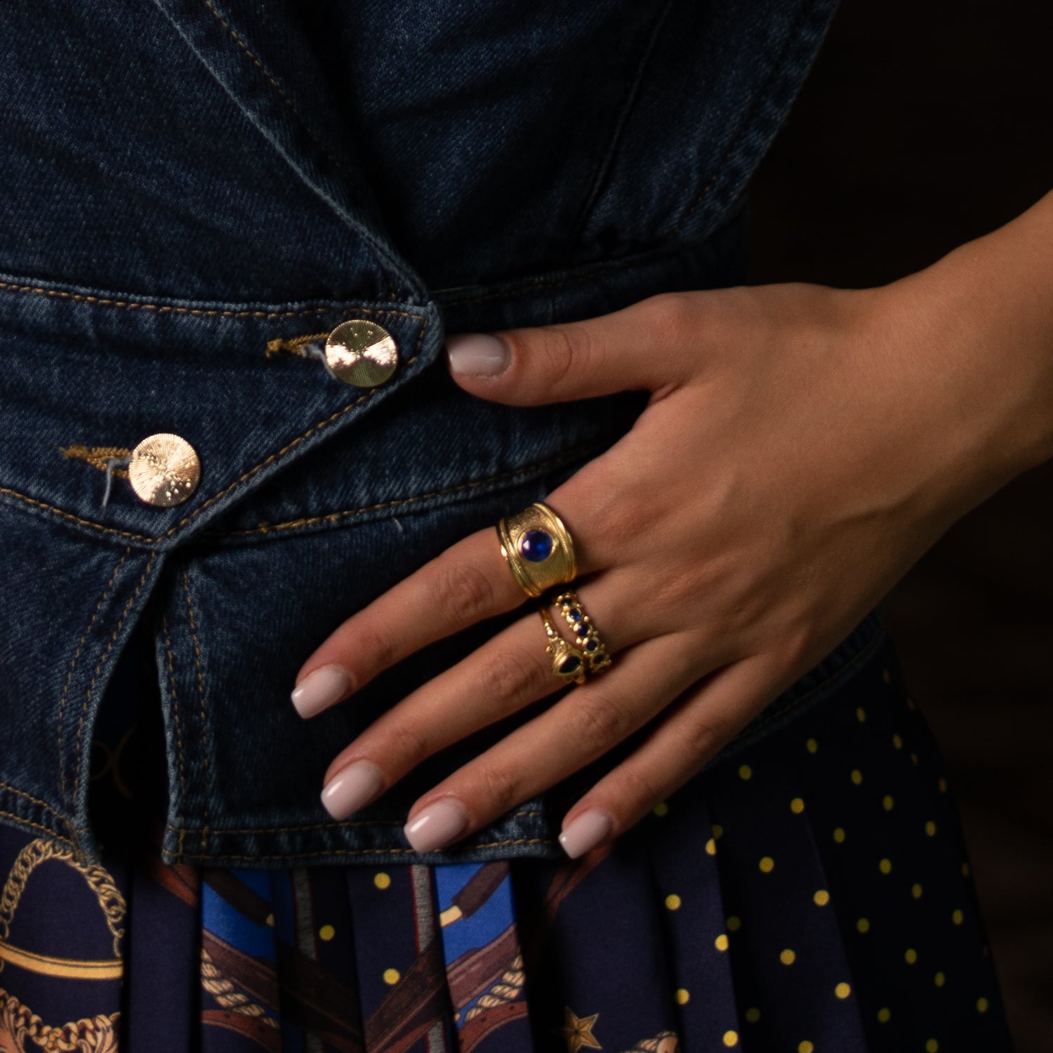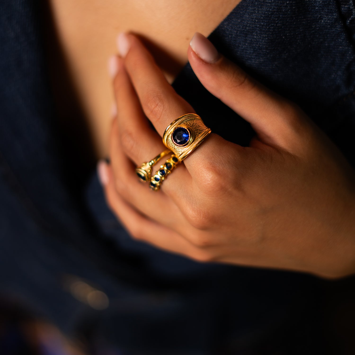 Royal Sapphire Adjustable Gold Plated Stackable Ring