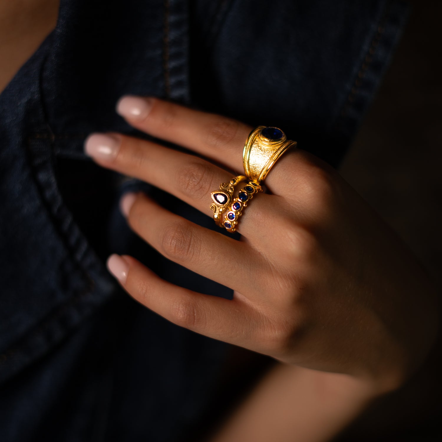 Mystic Duo Amethyst & Sapphire Gold Statement Ring
