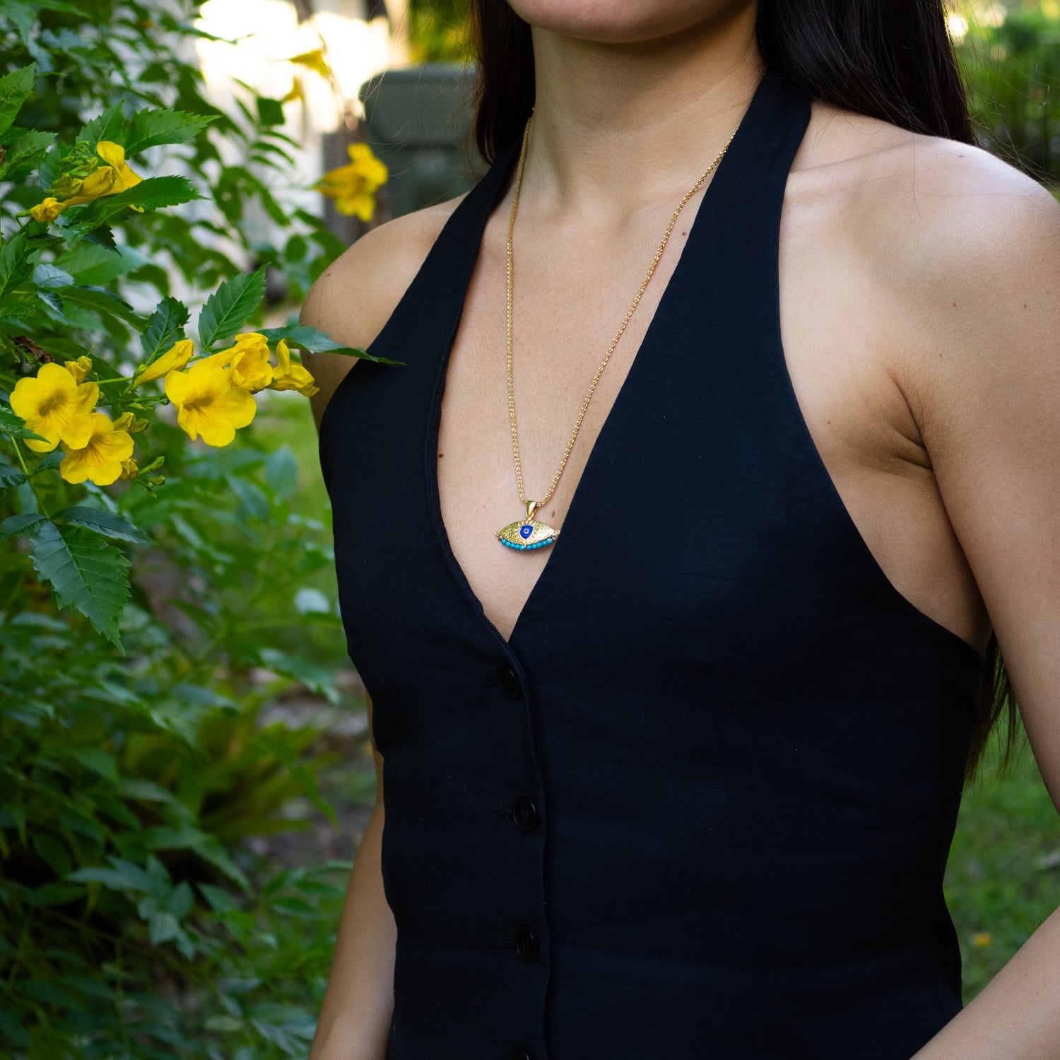 Spiritual Aura Turquoise Evil Eye Gold Necklace