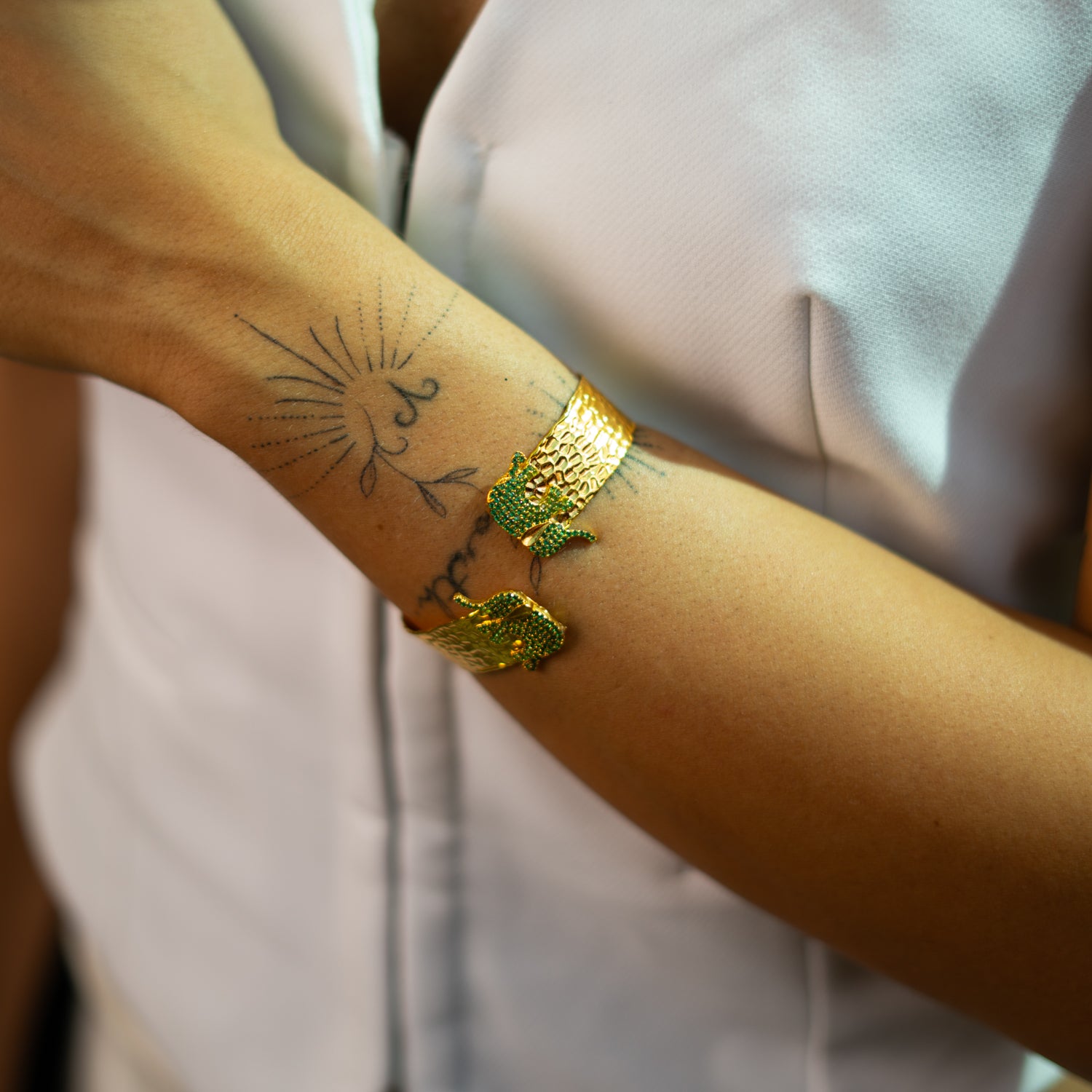 Emerald Serpent Guardian Gold Cuff Bracelet