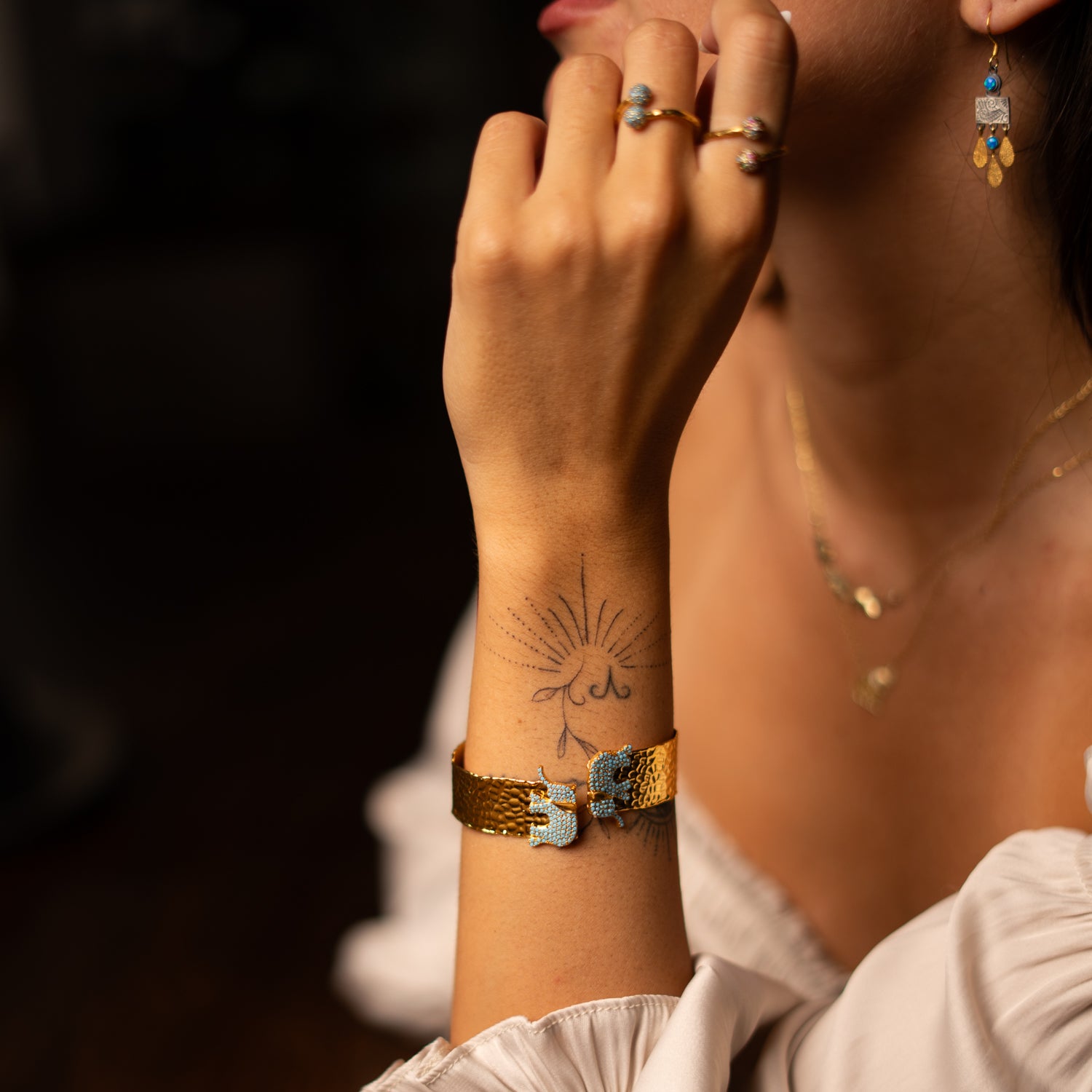 Guardian Sapphire Elephant Gold Cuff Bracelet