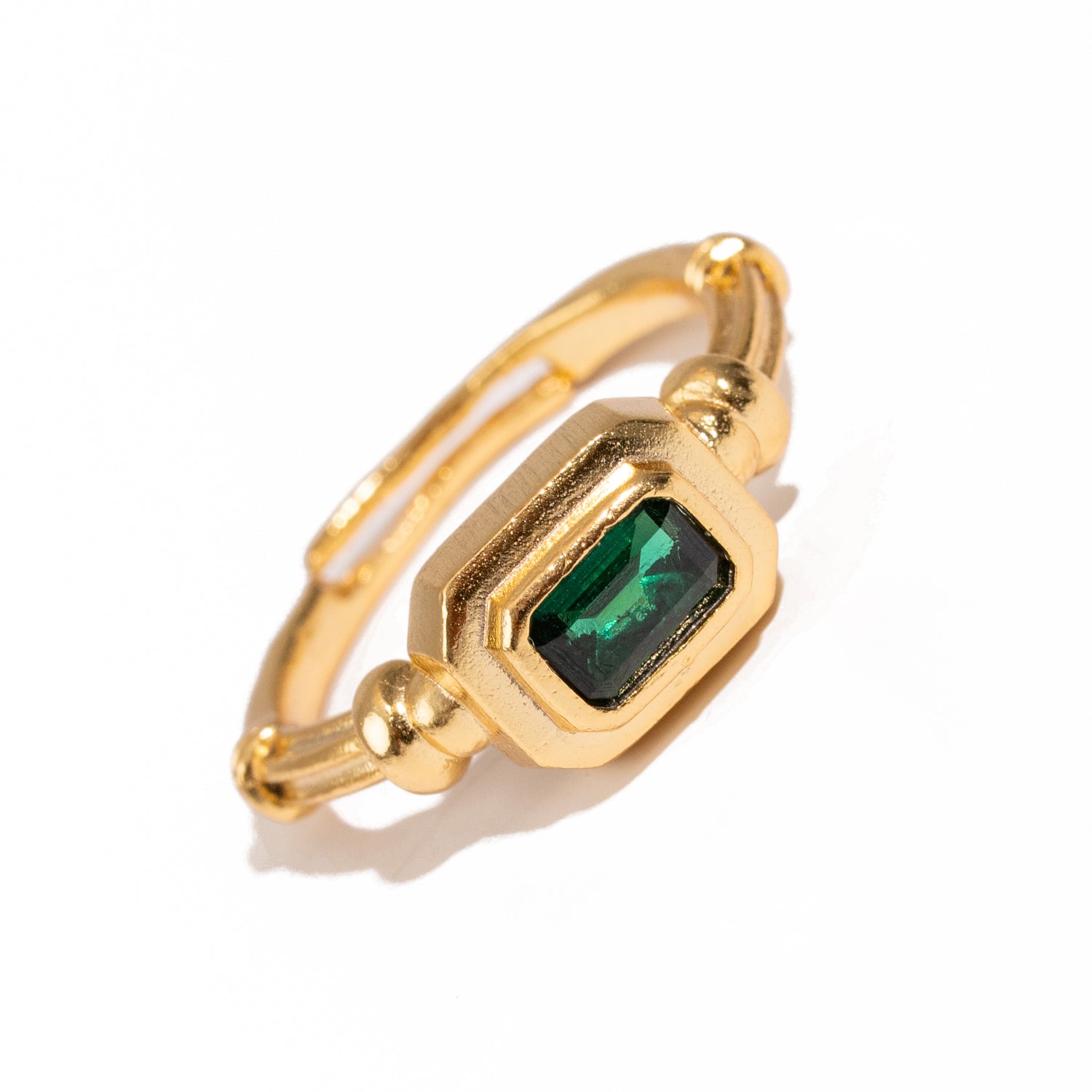 Emerald Glow Minimalist Gold Adjustable Ring