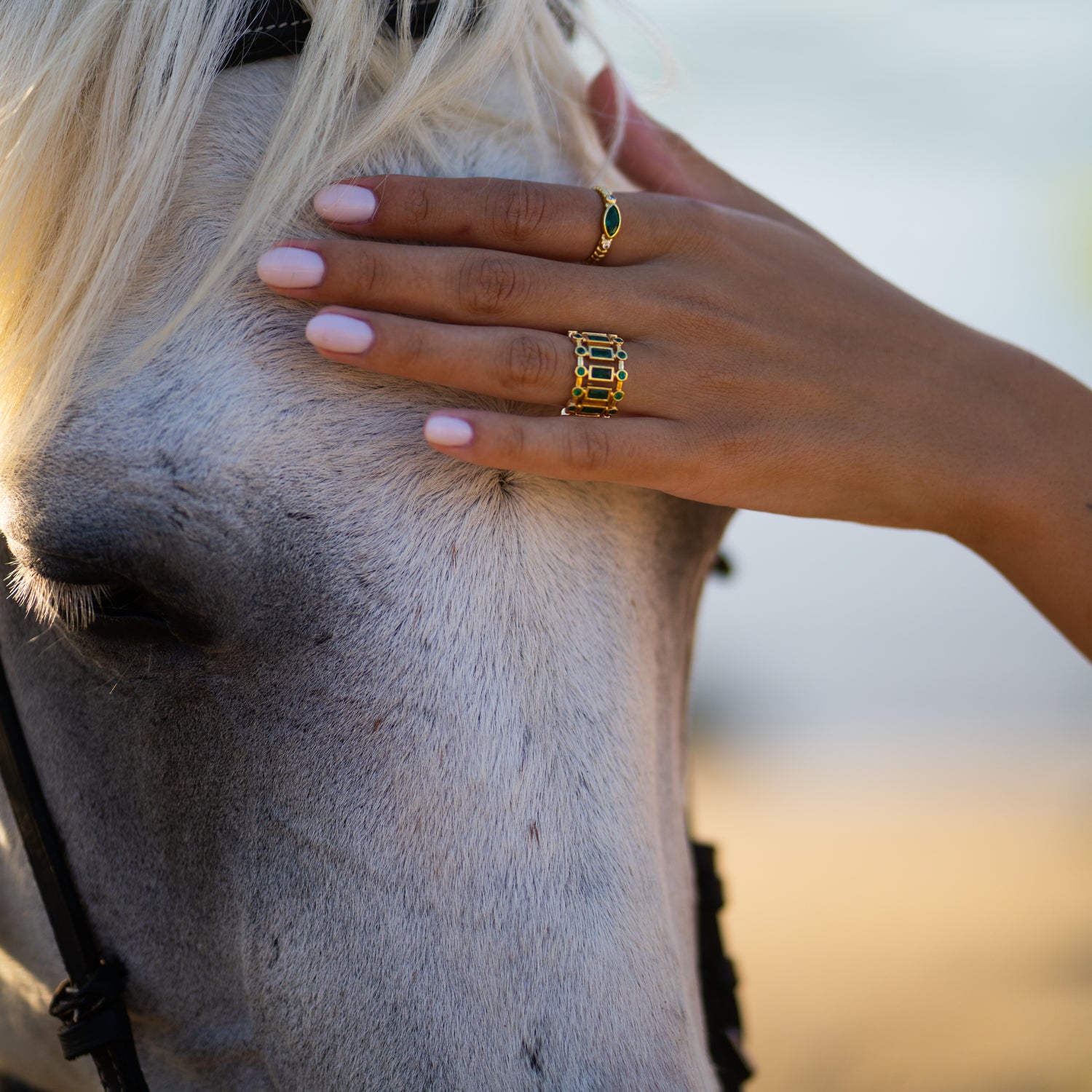 Emerald Glow Adjustable Gold Plated Stackable Ring
