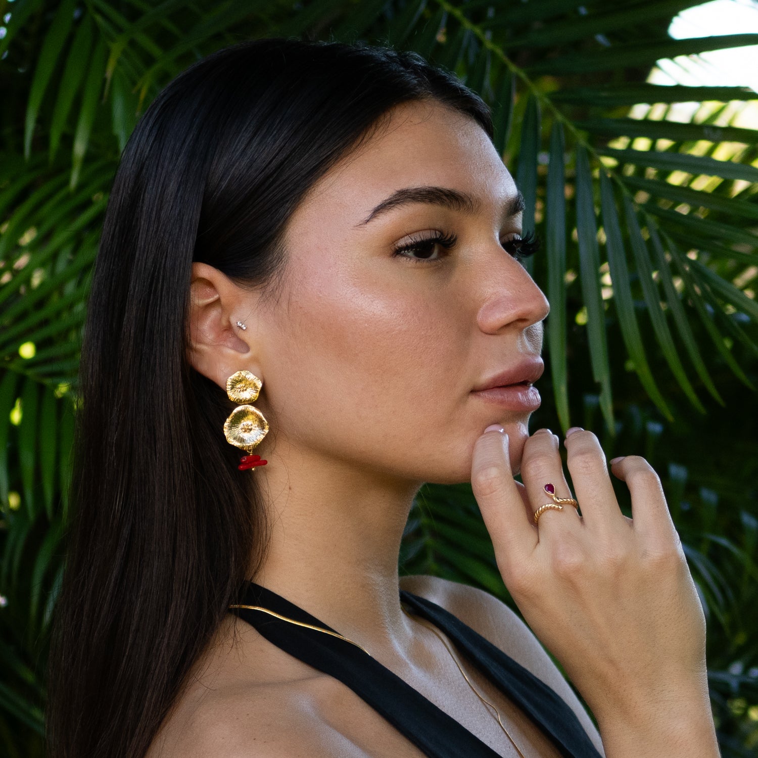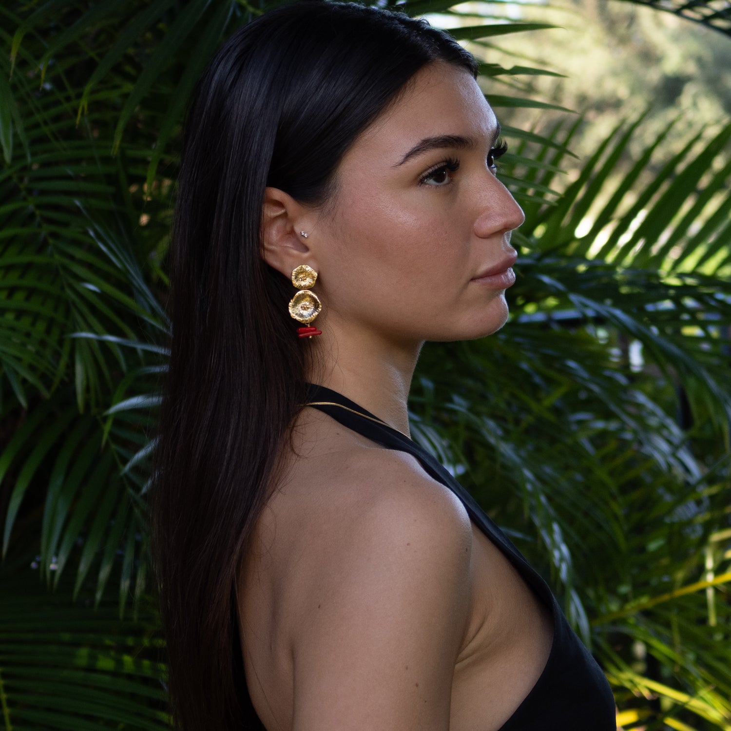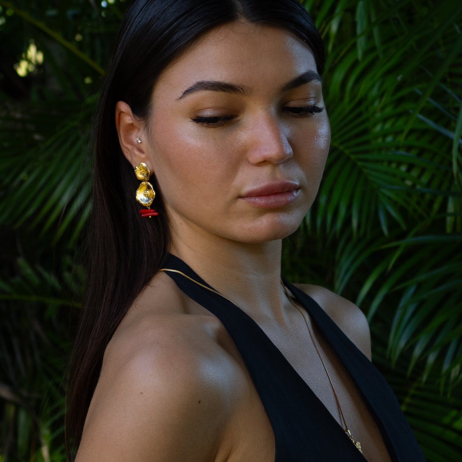 Ocean Flame Coral Gold Dangle Earrings