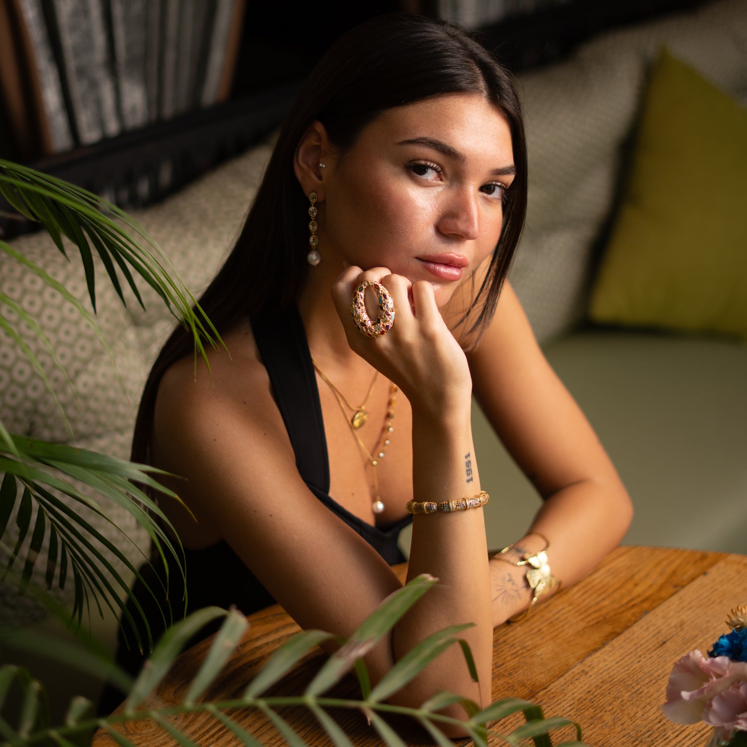 Cleopatra Sapphire & Pearl Gold Chunky Cuff Bracelet