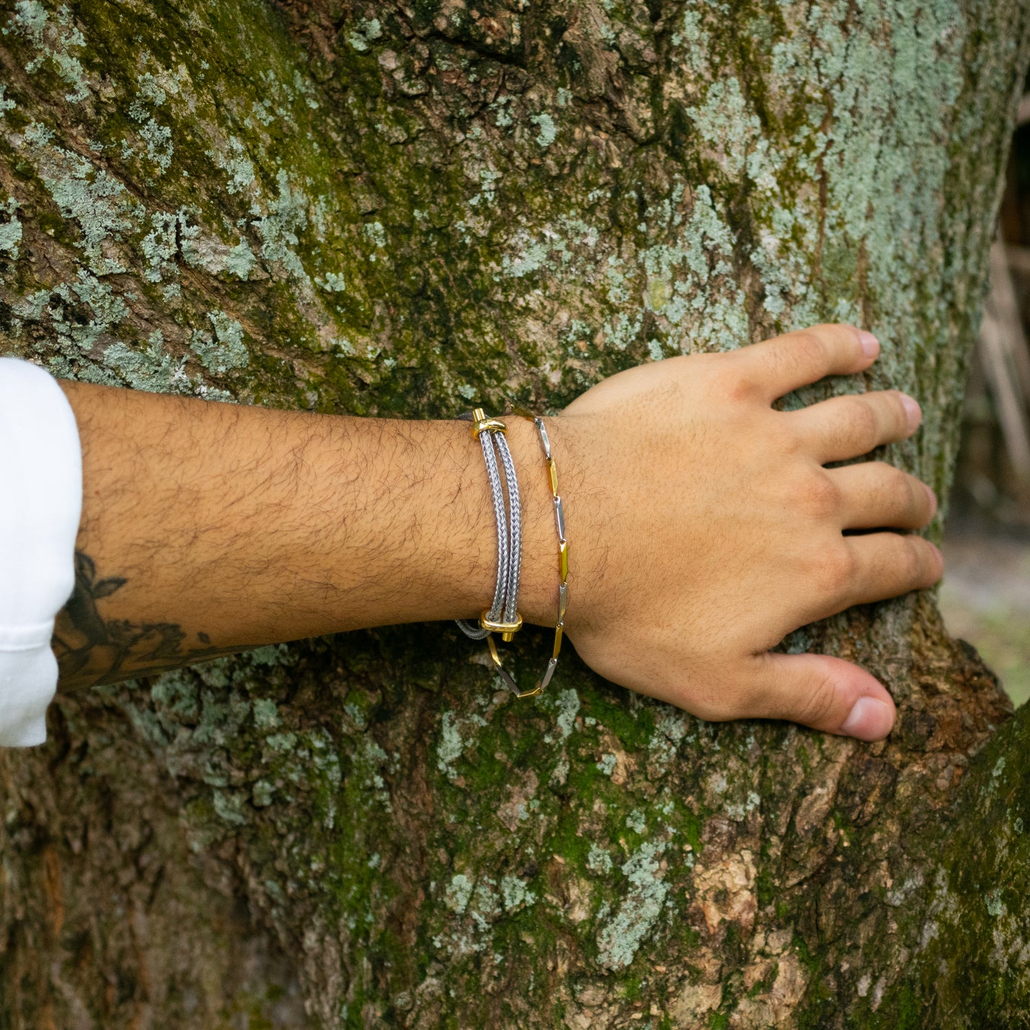 Sterling Silver Spiritual Symbols Grey Woven Hope Braided Bracelet